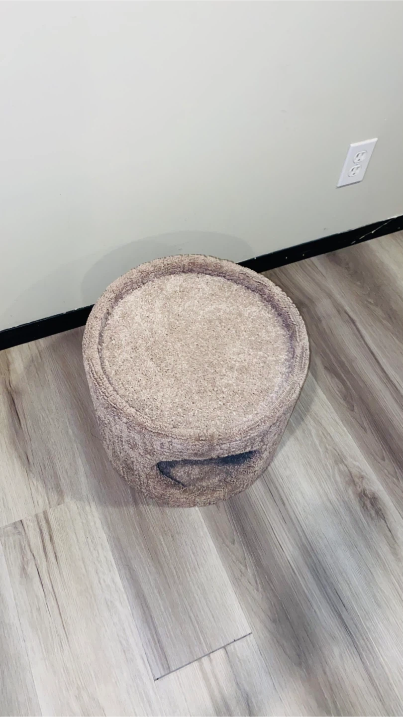 Selling a cozy carpeted cat bed cave! It's in great shape and perfect for your feline friend to curl up in. Provides a secure and comfortable space for your cat to rest and play