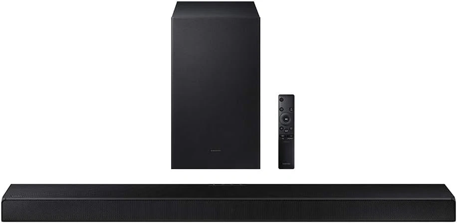 Samsung 55" QLED TV with Soundbar and Subwoofer