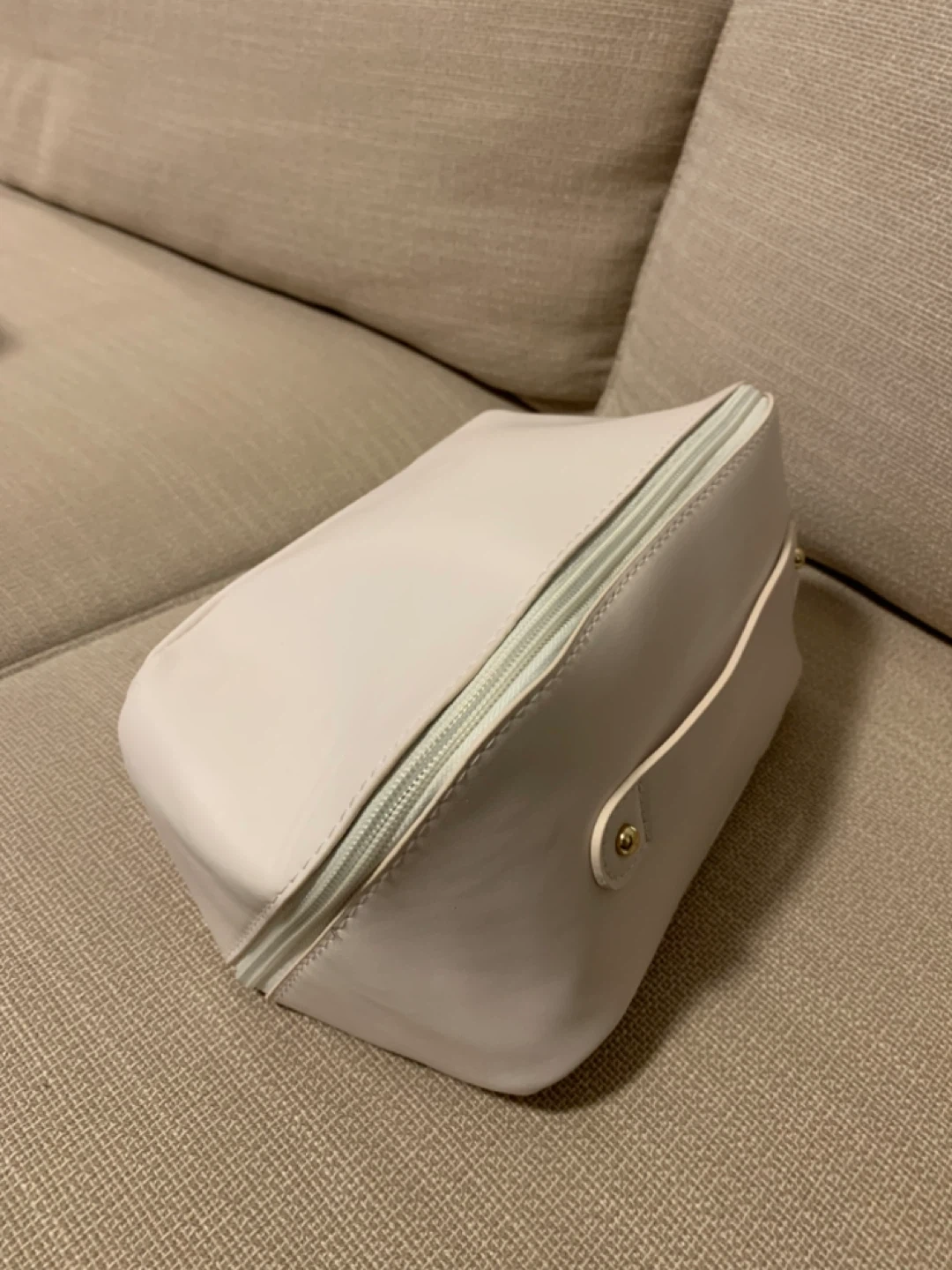Selling a handy off white cosmetic or travel pouch! It's in great condition and perfect for keeping your essentials organized on the go. It has a handle for easy carrying and a zippered closure to keep everything secure.
