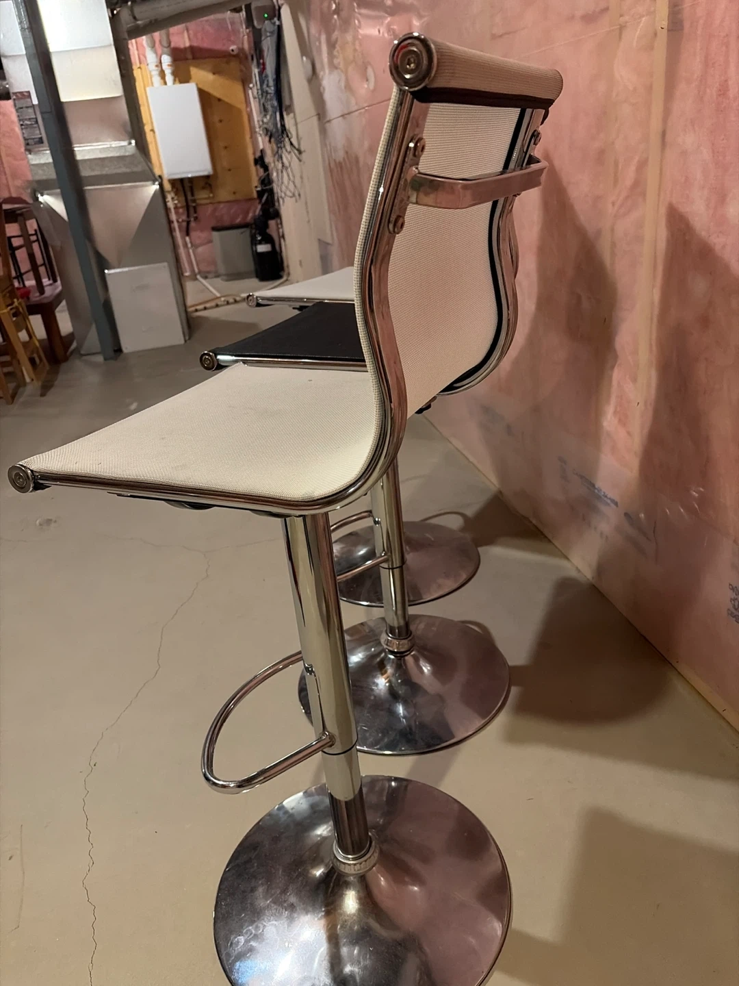 They feature a sleek chrome finish and adjustable height, making them both stylish and functional.