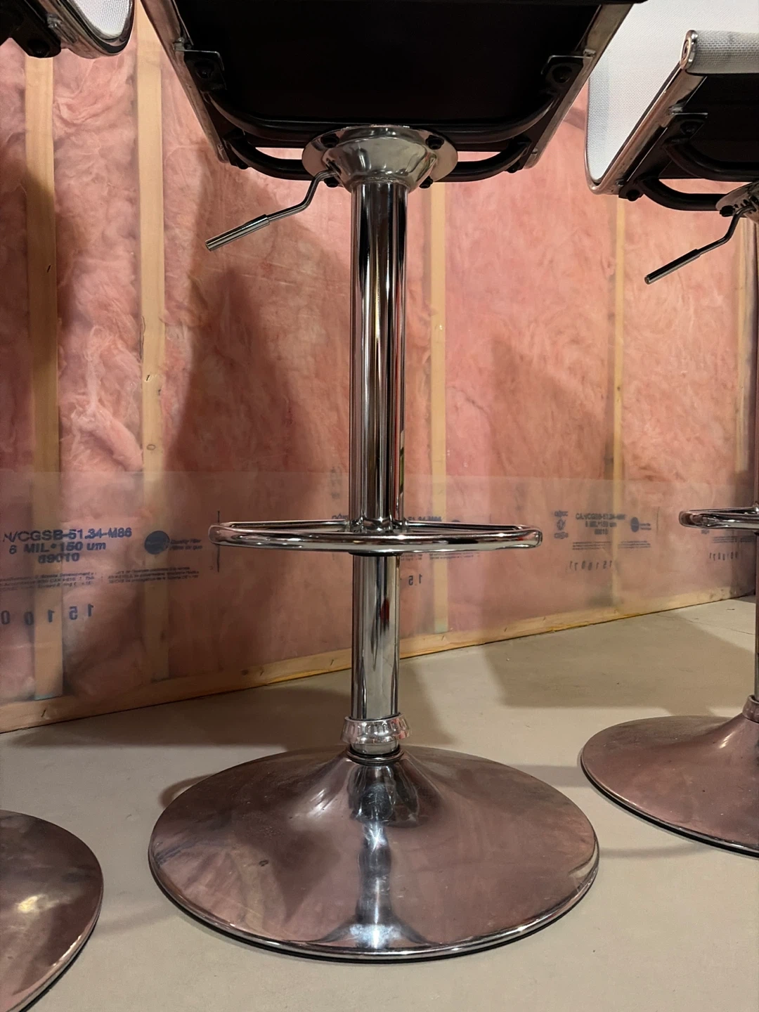 They feature a sleek chrome finish and adjustable height, making them both stylish and functional.