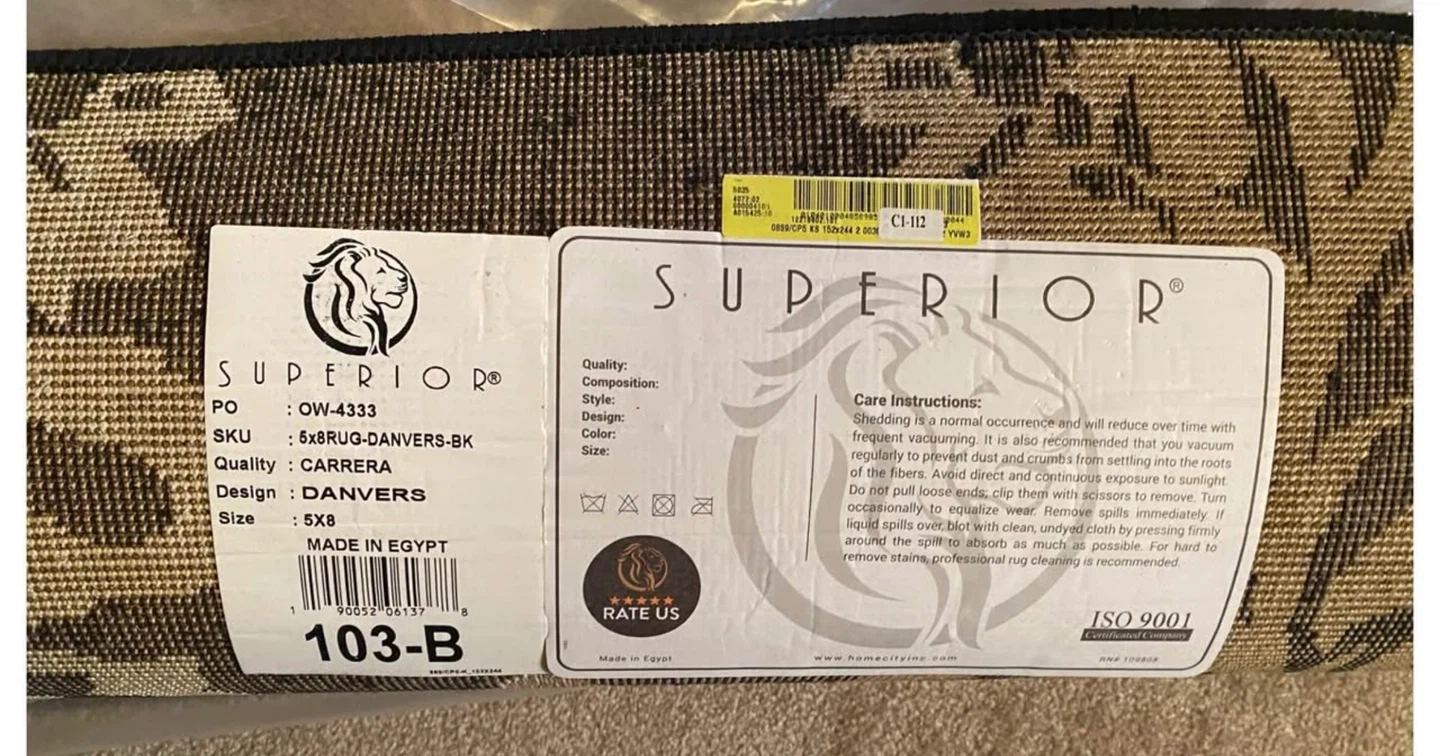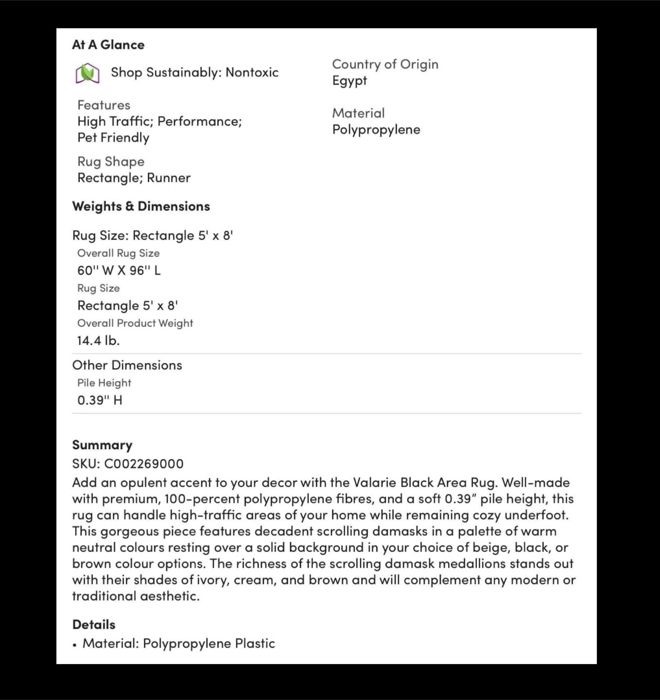 Add a touch of elegance to your space with this Superior Carrera Danvers rug! It's a stylish 5x8 rug in black/tans with a beautiful damask pattern. Made from 100% polypropylene, it's perfect for high-traffic areas and is pet-friendly too