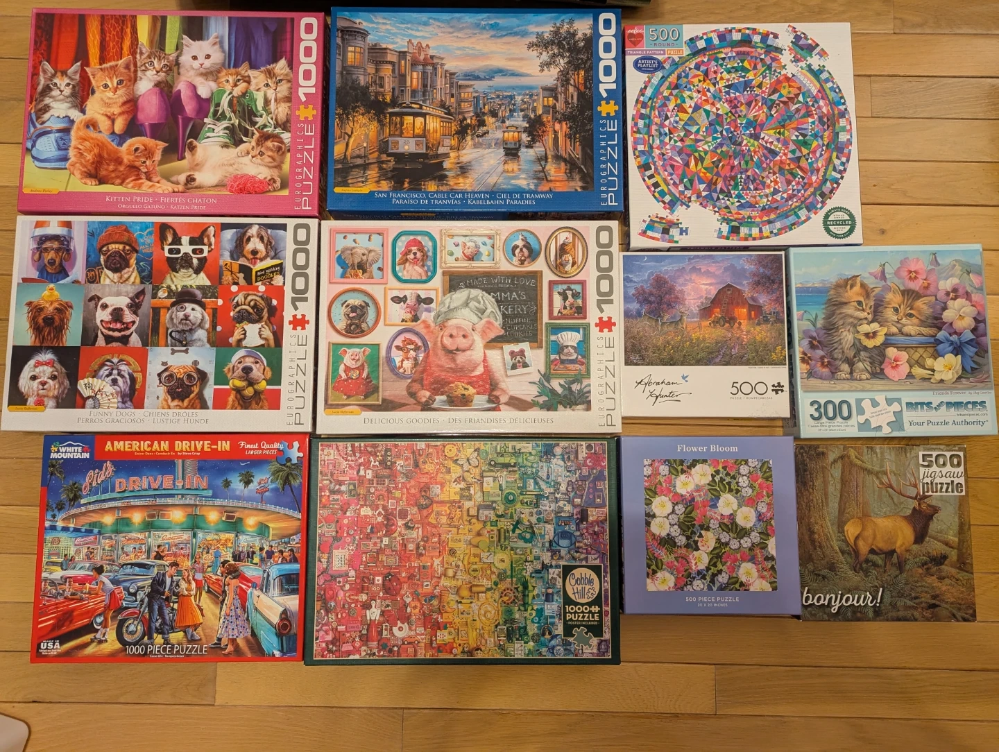 Selling or trading a collection of jigsaw puzzles, including brands like Eurographics, White Mountain, Bits and Pieces, and Cobble Hill! All puzzles in this listing are complete.