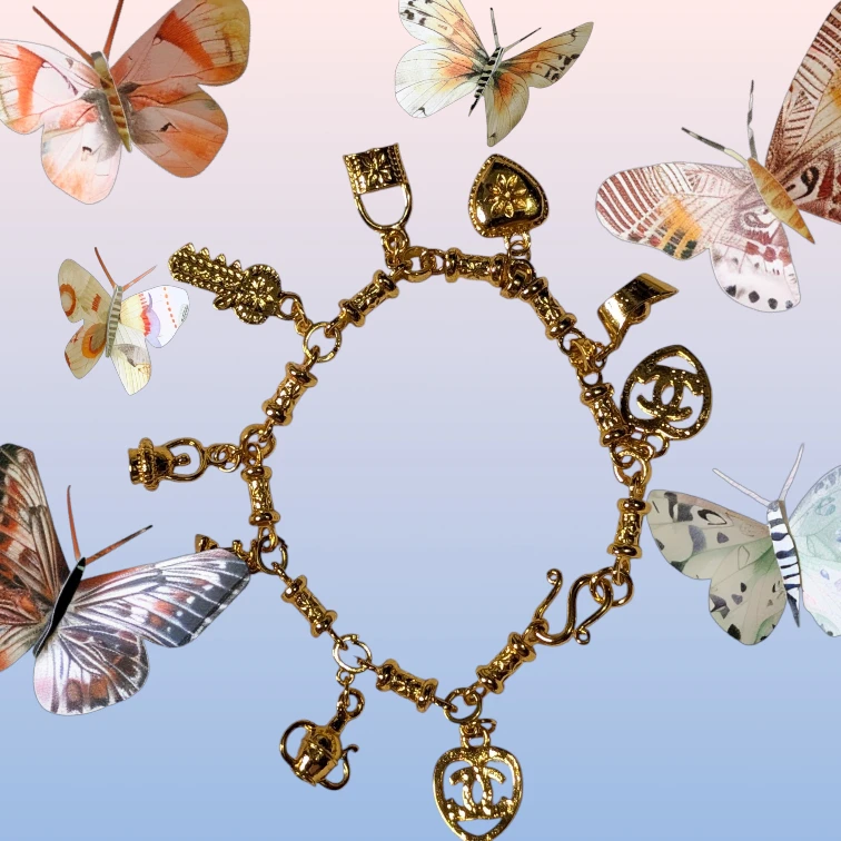 Selling a cute Chanel charm bracelet in gold. It's in great condition and has a variety of unique charms. Perfect for adding a touch of elegance to any outfit!