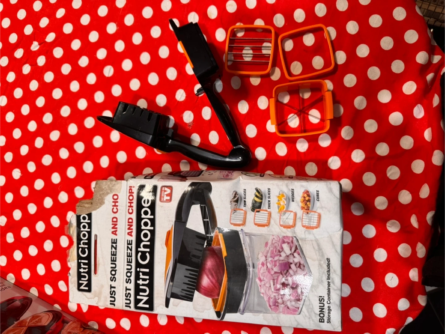 Selling a Nutri Chopper and a Hamilton Beach Quesadilla Maker! Both come with their boxes and all original components. Get ready to chop and make quesadillas with ease!