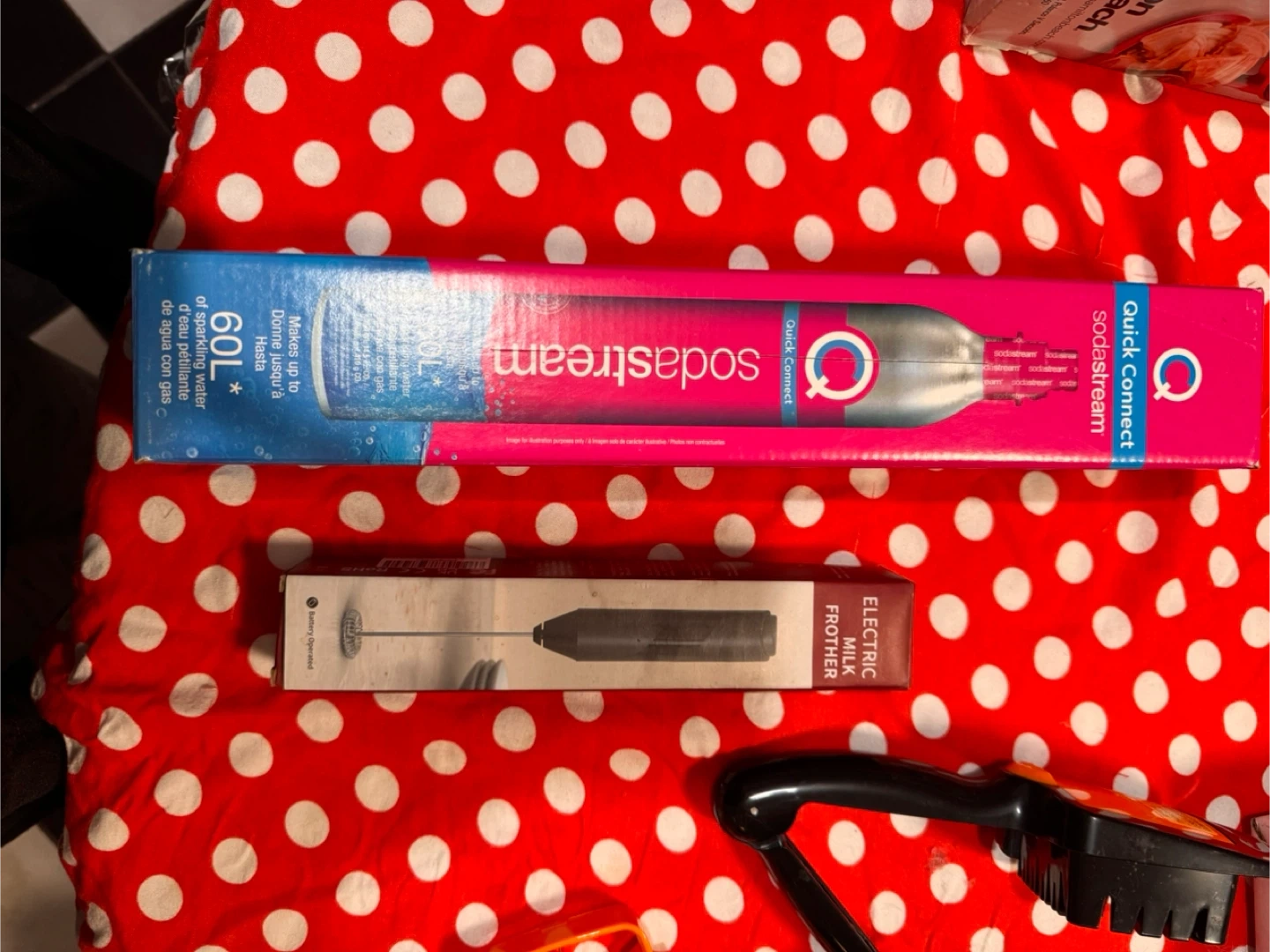 Selling a SodaStream Quick Connect that makes up to 60L of sparkling water, along with an electric milk frother! Both items are in great condition and ready to use