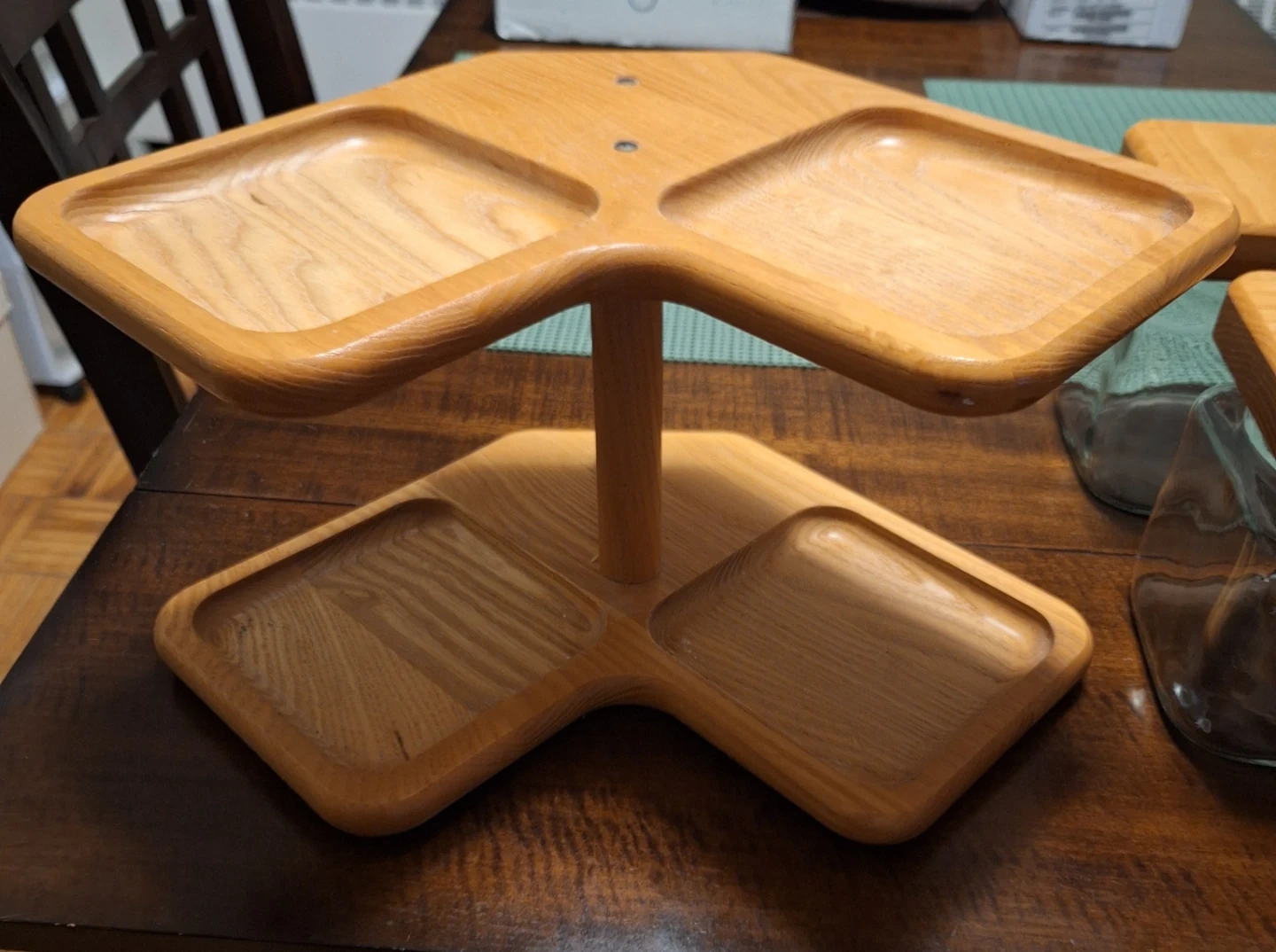 5 piece Canister Set. Includes 4 glass Canisters with wooden tops and a wooden stand. Each Canisters holds approximately 4 cups/32oz.