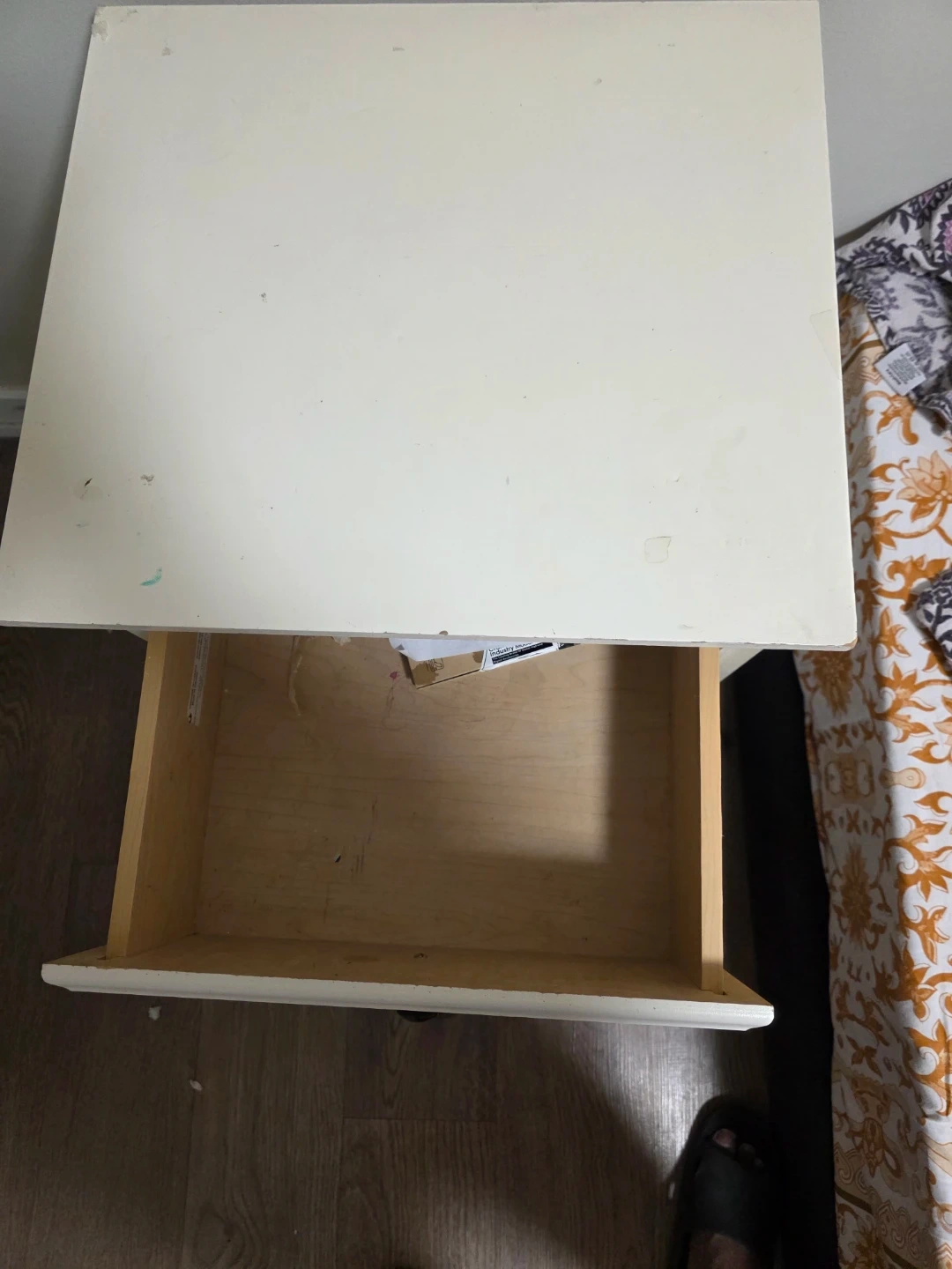 A lovely bedside table in a classic white finish. It features a handy drawer for storing your nighttime essentials and an open shelf below. Perfect for any bedroom!