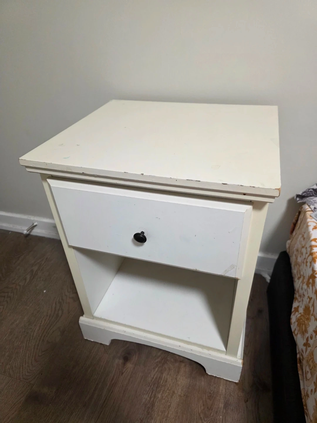 A lovely bedside table in a classic white finish. It features a handy drawer for storing your nighttime essentials and an open shelf below. Perfect for any bedroom!