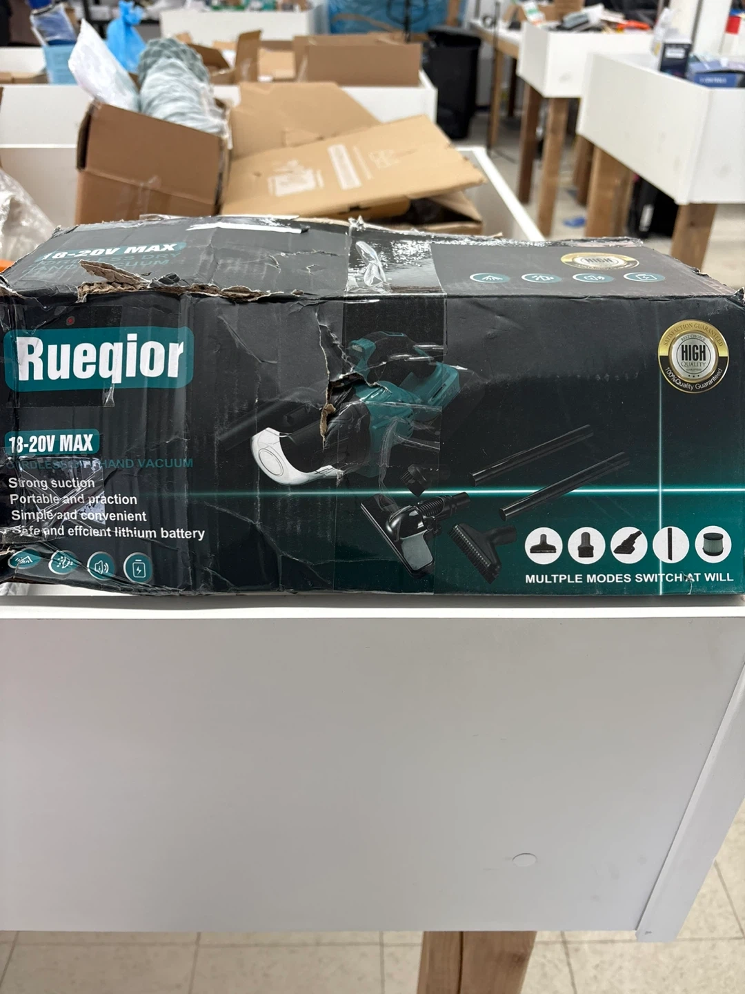 Selling an open box new Rueqior cordless handheld vacuum! It's still in its original box. This vacuum offers strong suction and is super portable and convenient. It also features multiple modes that you can switch at will. Perfect for quick cleanups!