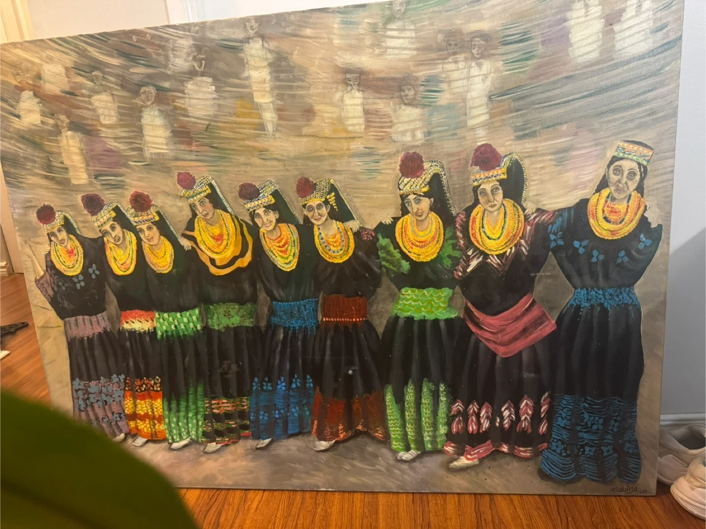 Selling a beautiful big size hand painted canvas with Keelashi Girls traditional dancing painting on gallery canvas.