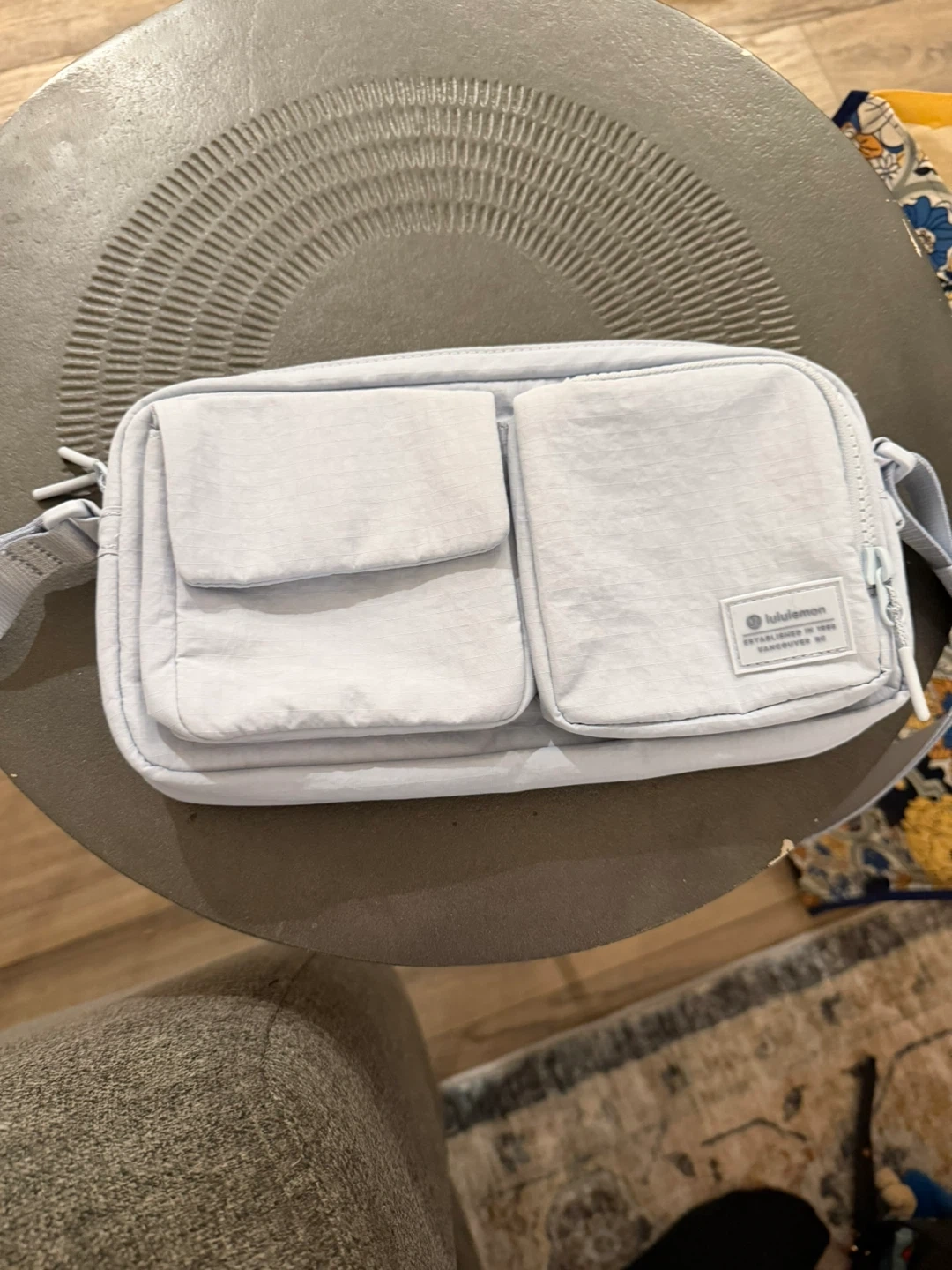 This Lululemon Everywhere Expandable Crossbody Bag is in a lovely shade of blue. It's perfect for keeping your essentials organized while you're on the go. The bag is designed with multiple pockets and an adjustable strap for comfortable wear