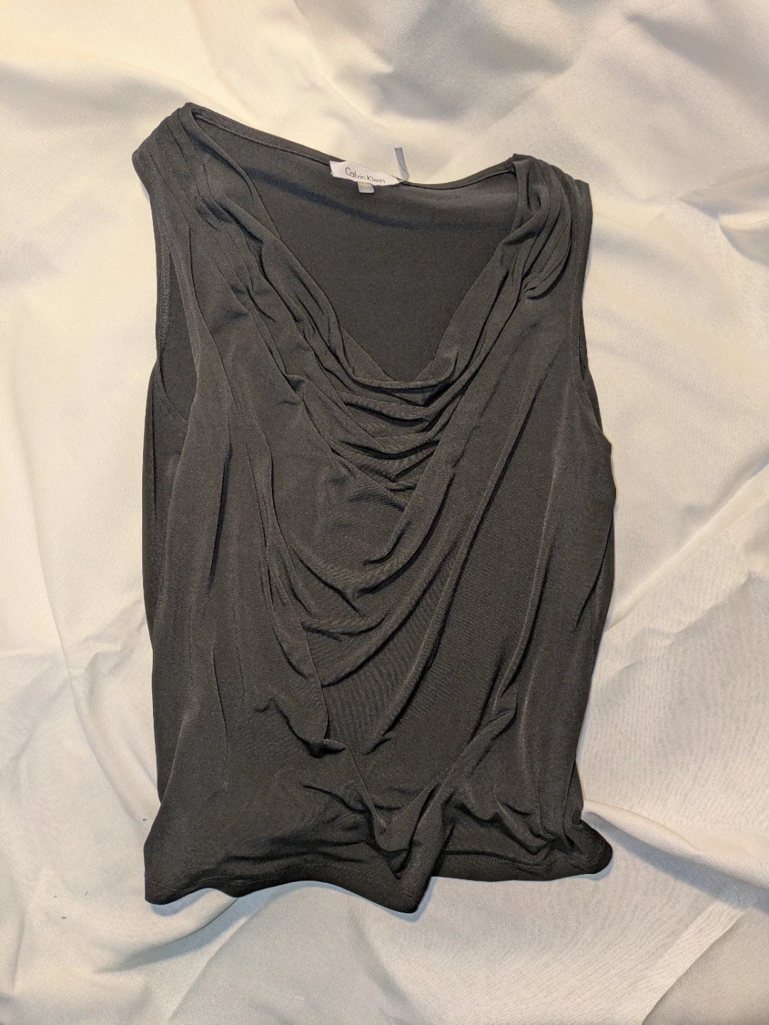 1. Black drapey tank - Calvin Klein, poly/spandex blend