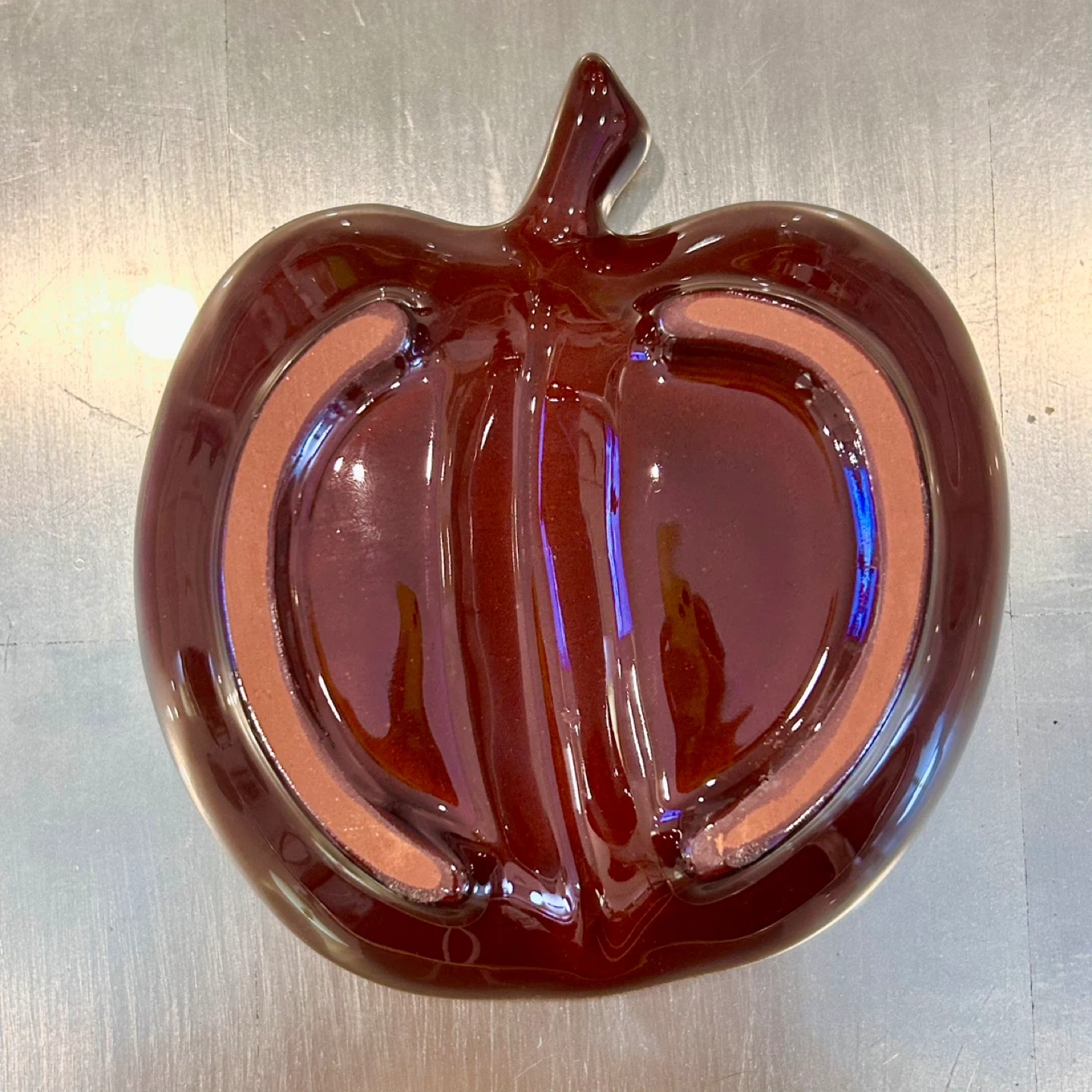 Mid-Century Apple Divided Dish, Drip Glaze Studio Pottery