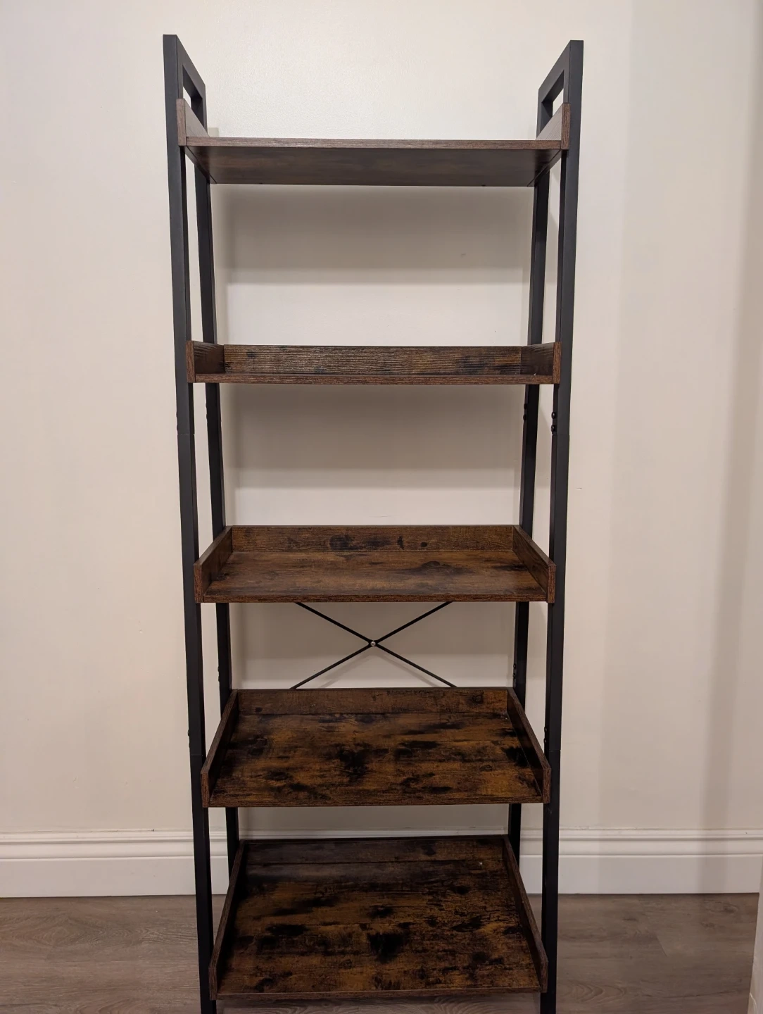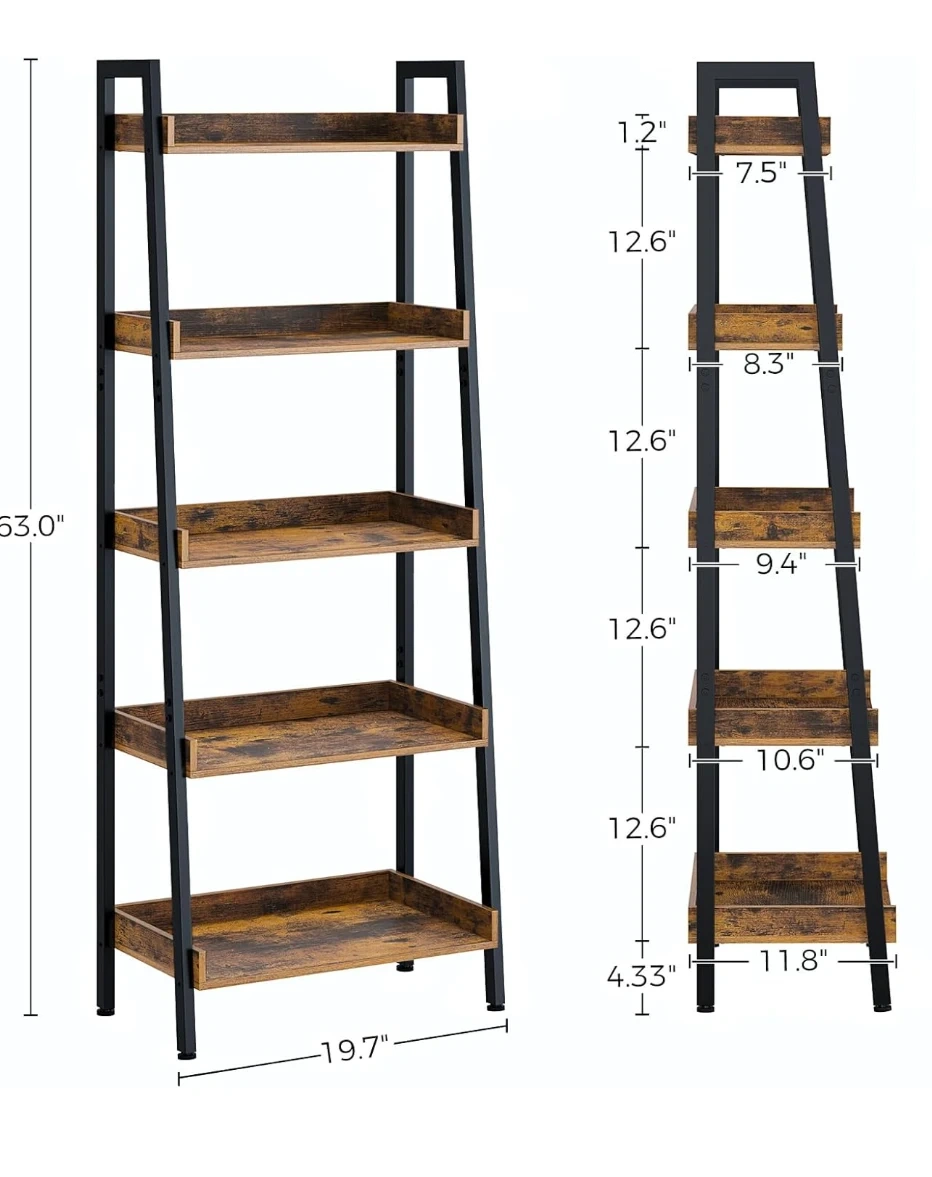 5-Tier Bookshelf, Rustic Brown Ladder Shelf
