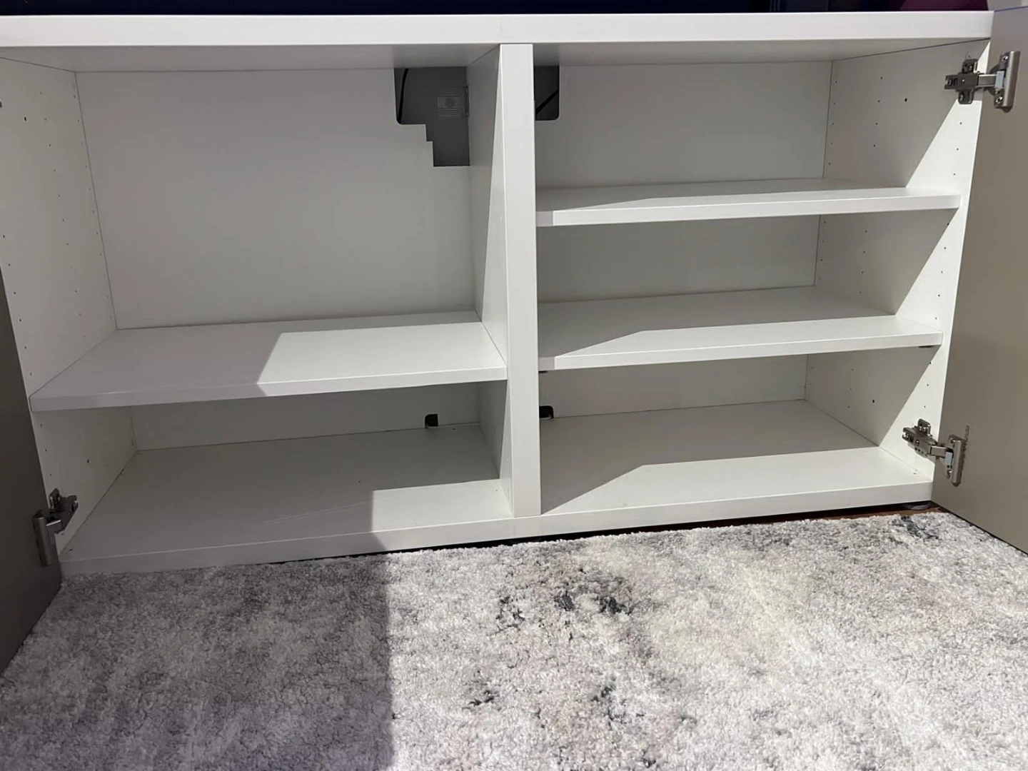 Selling an IKEA Besta TV unit in a bronze and white colour combination. It's in great shape and ready to organize your entertainment area! The unit measures approximately 47 1/4" in length, 16 1/2" in depth, and 25 1/4" in height.