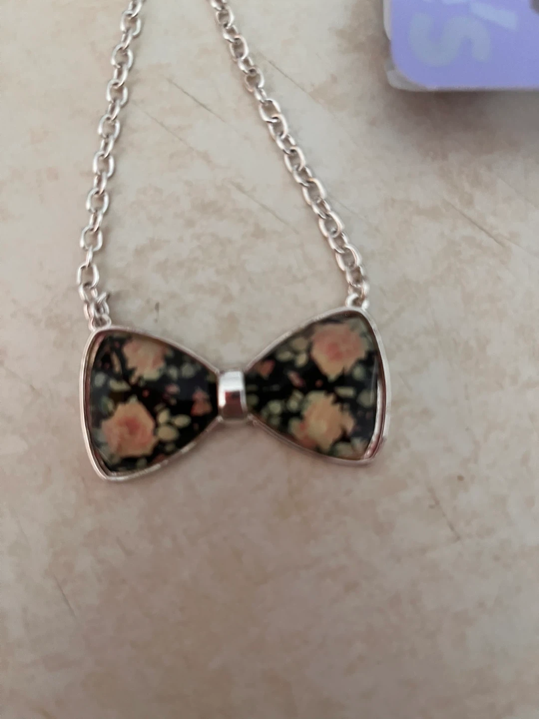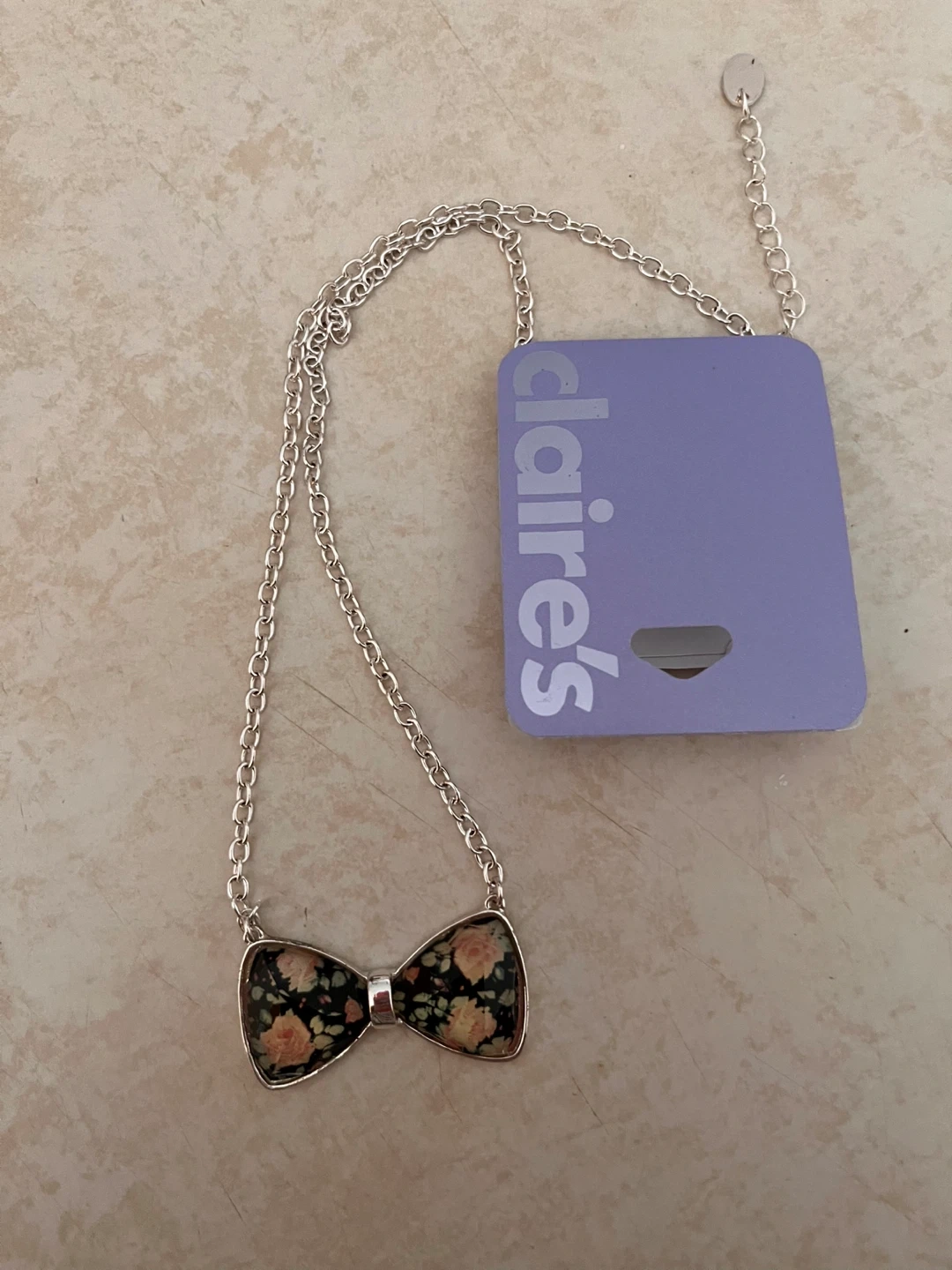 Buy & SellClaire's Bow Tie NecklaceClaire's Bow Tie Necklace$5Cute Claire's necklace with a bow tie pendant. The bow tie has a floral pattern on a black background. The chain is silver-tonedConditionNewBrandClaire'sWHERE TO MEETCheck LocationView MapSELLERverifiedKayWasaga Beach600 reviews0 chats·0 favorites·1 viewsSEND CHAT TO SELLERHi Kay! I’m interested in your listing.Hi Kay! I’m interested in your listing.Get the Karrot app to chatSign In to chat