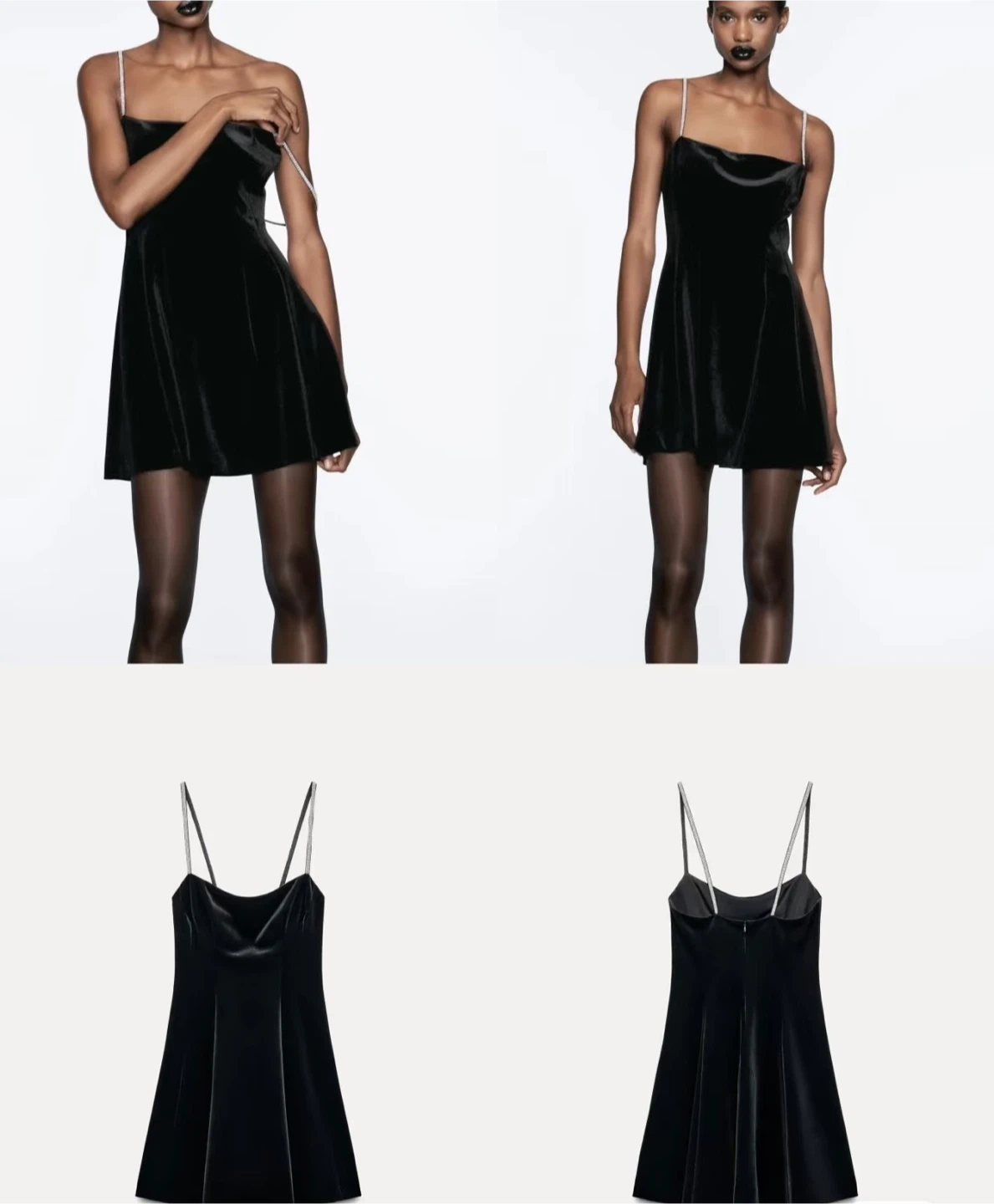 Selling three dresses from Zara! There's a bright pink mini dress, a black velvet mini dress with rhinestone straps, and a grey corset-style dress. All new with tags on Size Xs/s! three for $60