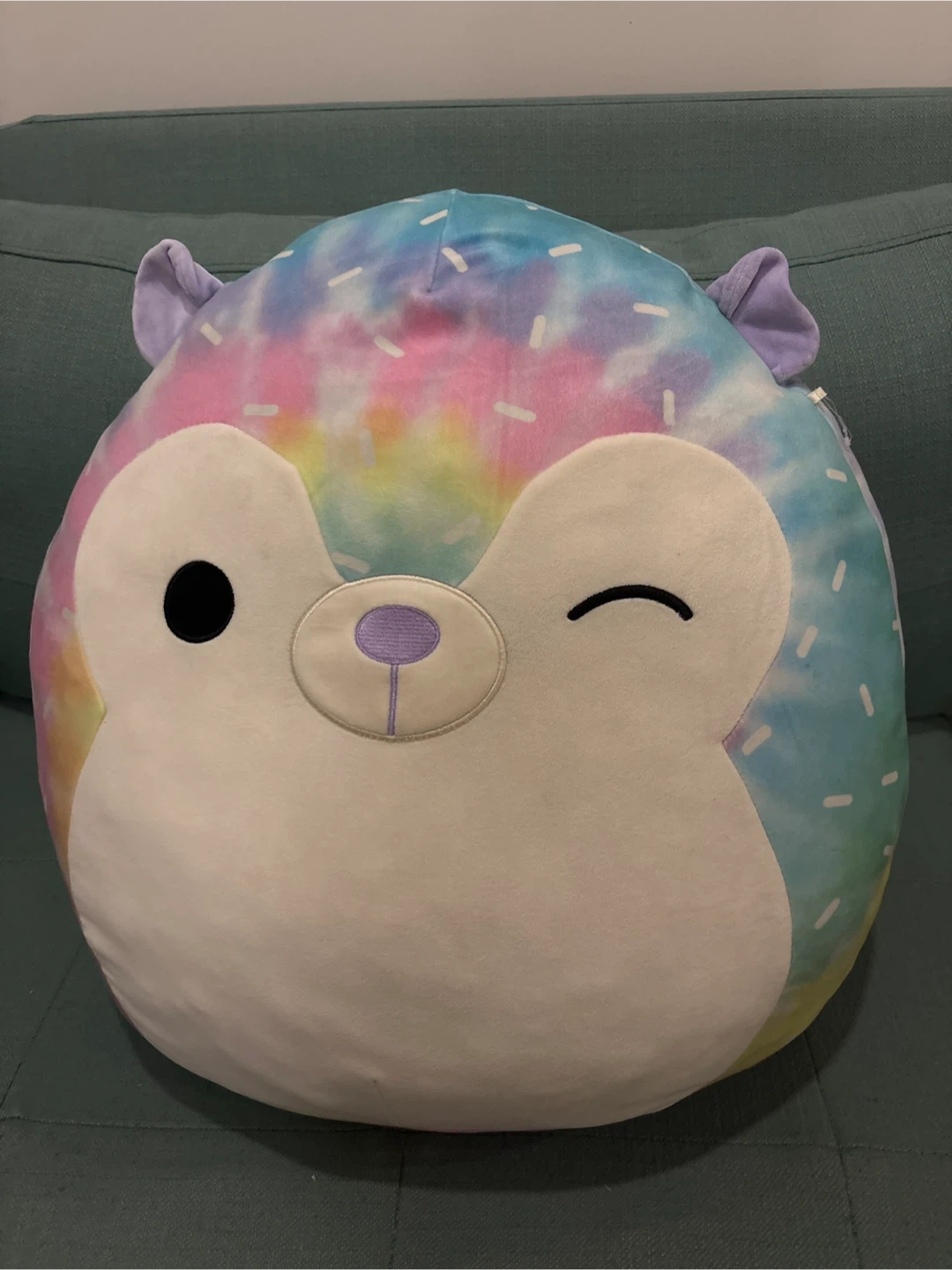Selling a cute large Squishmallows plush toy! It's a tie-dye hedgehog in great condition. Perfect for cuddling or as a decorative pillow. It's super soft and squishy!