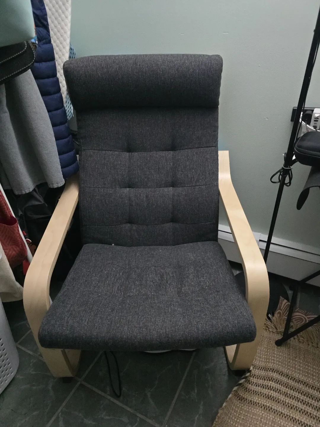 Selling a comfy IKEA Strandmon wing chair in dark grey! It's in great shape and perfect for creating a cozy reading nook or adding some extra seating to your living room. This chair is known for its high back and supportive design, making it a great place to relax after a long day