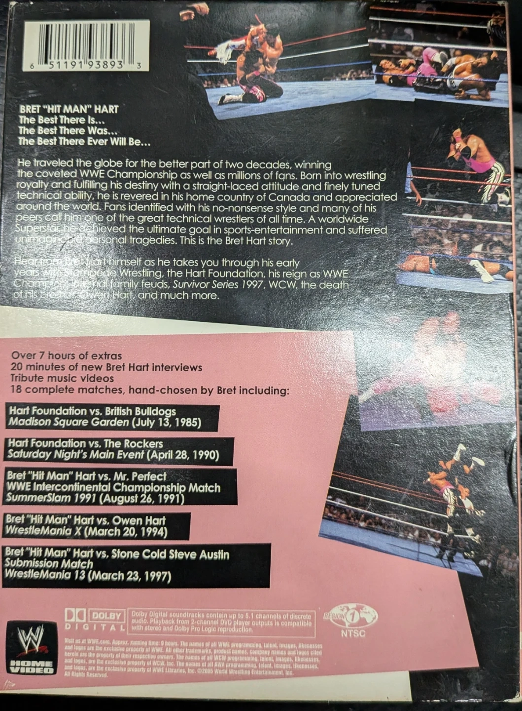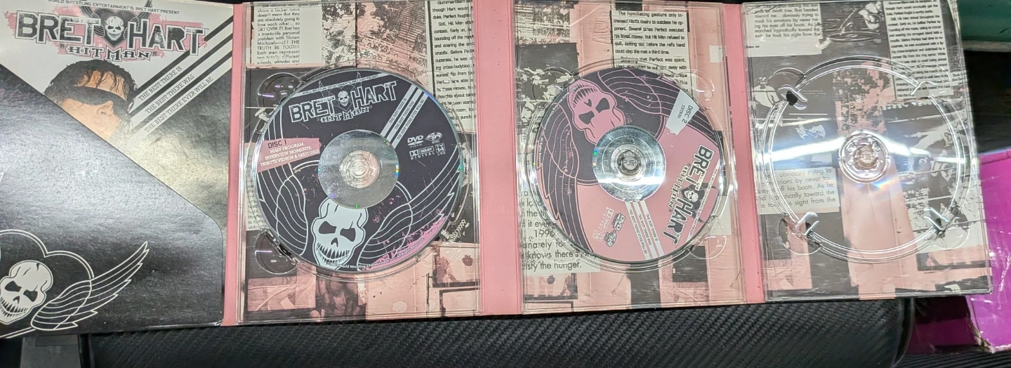 Selling a Bret Hart Hitman DVD Collector's Edition set. It includes 3 discs with over 7 hours of wrestling content. There are 20 minutes of new Bret Hart interviews, 18 tribute music videos, and 18 complete matches hand-chosen by Bret Hart.