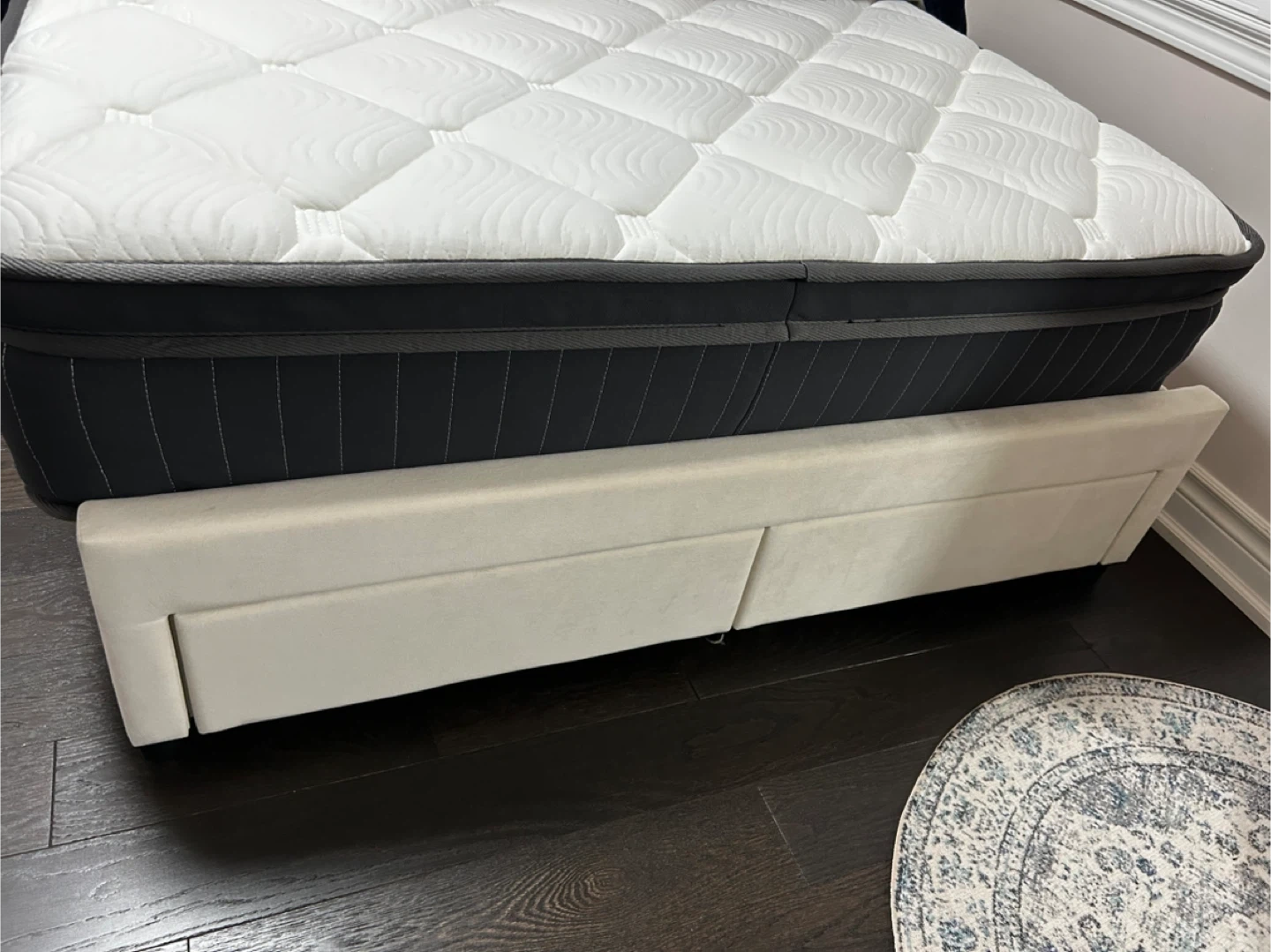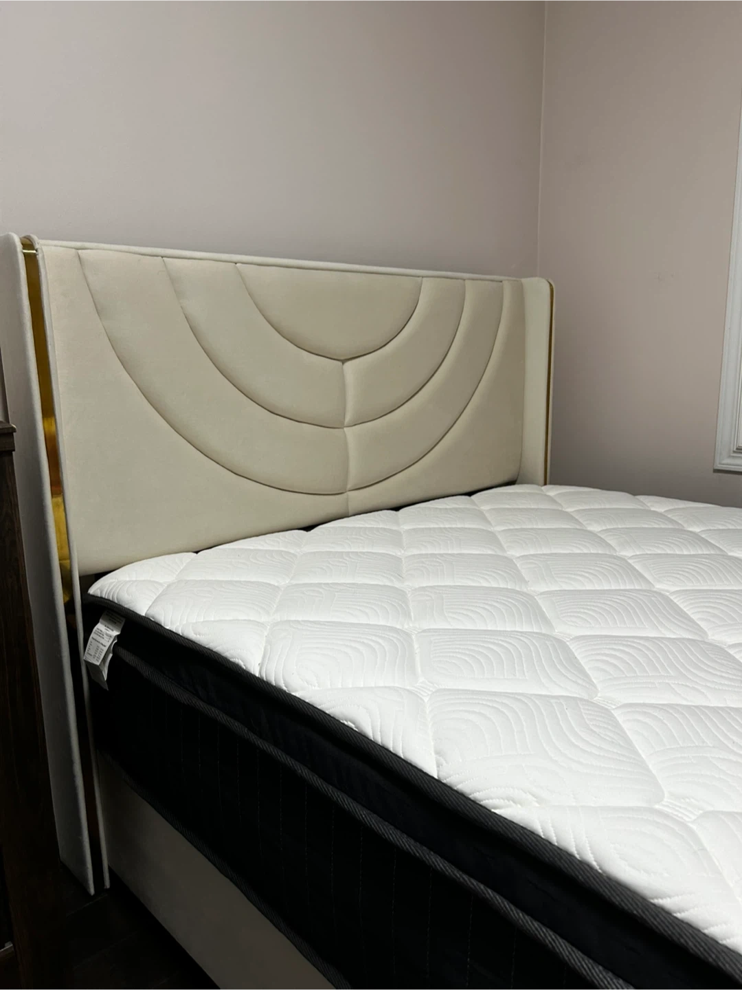 Selling a mattress with a stylish headboard. It's in great shape and ready to provide a comfortable night's sleep. The headboard adds a touch of elegance to any bedroom!