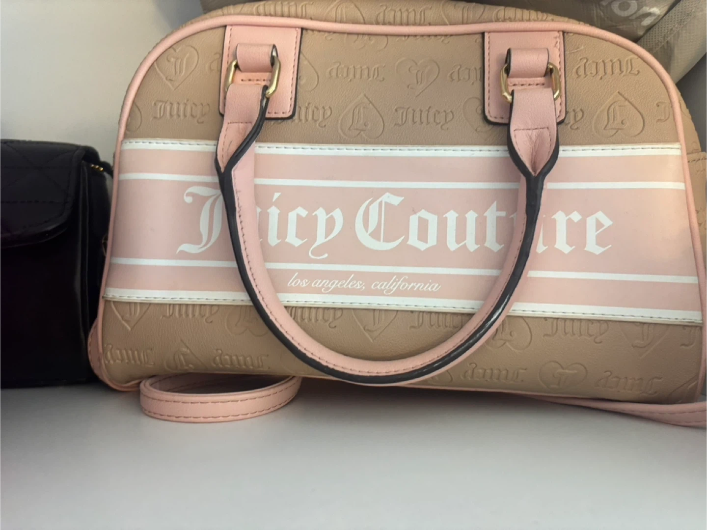 Selling a cute Juicy Couture purse in beige and pink! It’s in great condition and perfect for adding a touch of Y2K flair to your outfit. The bag has a unique design with the Juicy Couture logo and detailing. It's a stylish and functional accessory for any occasion
