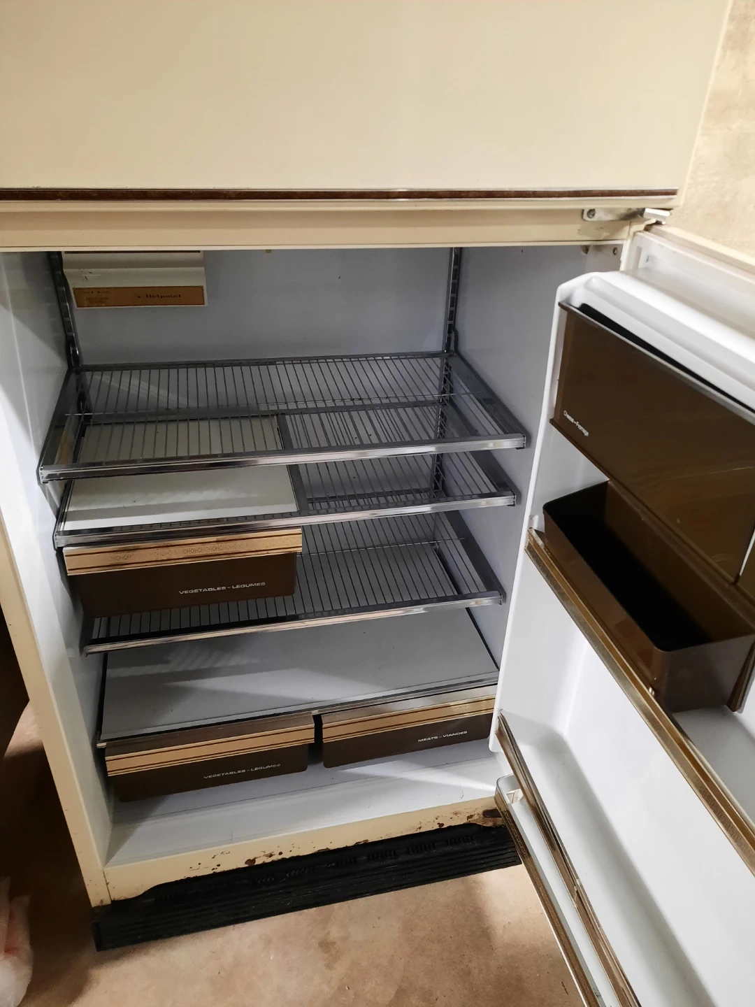 Selling a vintage Hotpoint fridge. It's a classic retro style fridge with a freezer on top. It has some wear and tear, but it works great and would be a great addition to a vintage-themed kitchen or garage. Perfect for someone looking for a unique piece! 30.5"x66"x26".