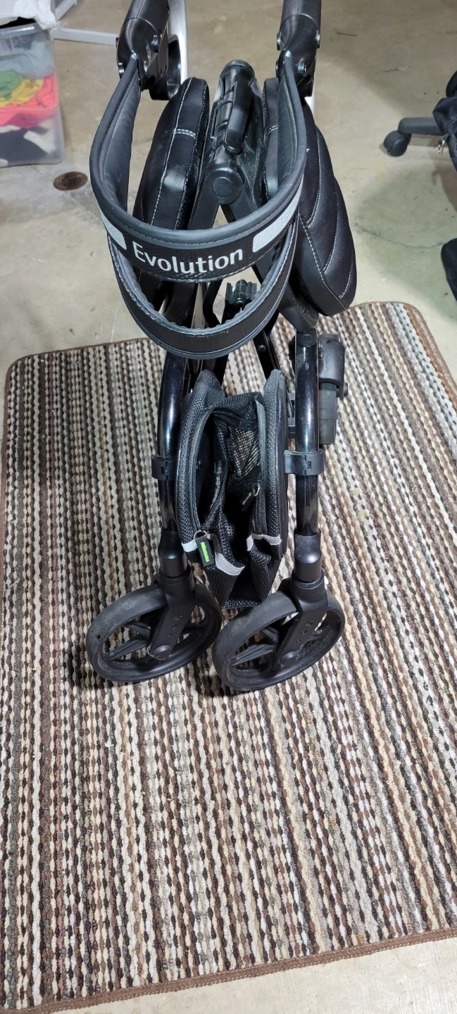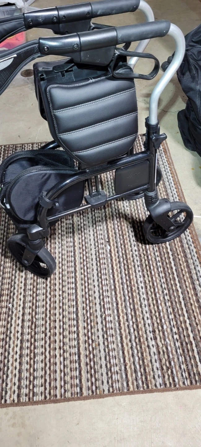 Selling an upright walker with a seat and basket. The walker is black with a black faux-leather seat with white stitching. It also has a convenient black mesh basket underneath for carrying items. Great for anyone needing a little extra support while walking! Brand new item my mom didn't even use this walker I got for her to help with her every day tasks, is a little dusty but will be fully detailed when someone interested message me thanks for viewing.