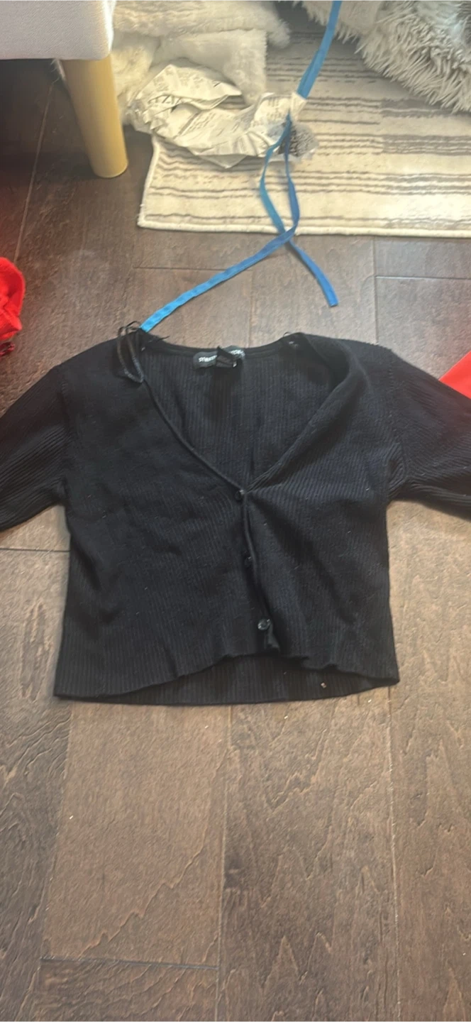 Streetwear Society black cardigan with a v-neck and button closure. It's in good condition and ready for a new owner!
