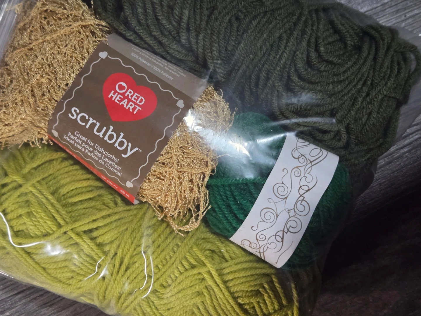 ● 1 new small ball of dark green yarn
