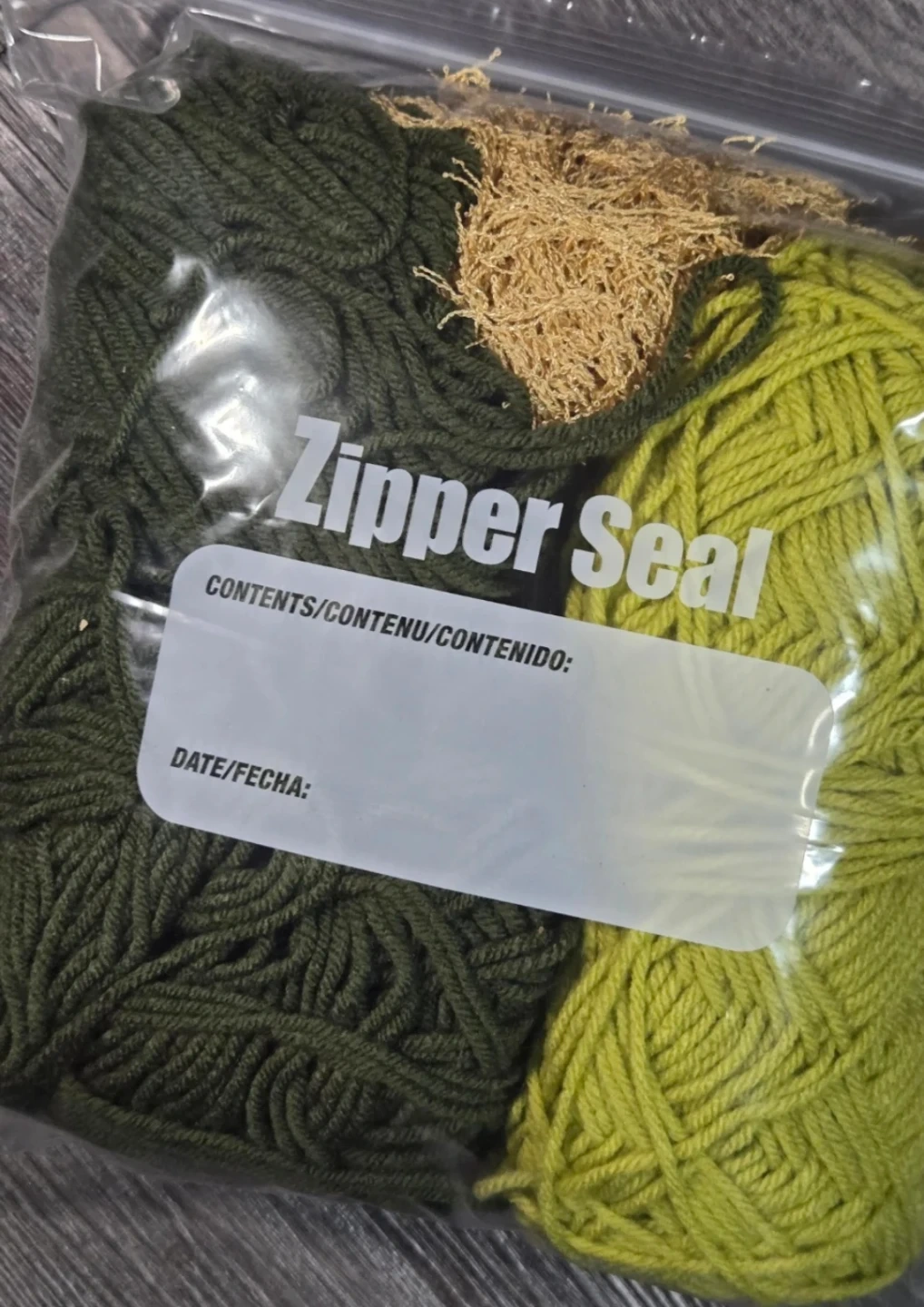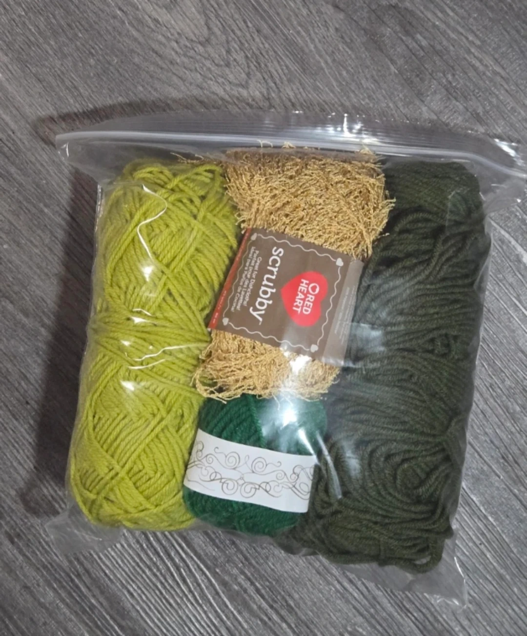 ● 1 new small ball of dark green yarn