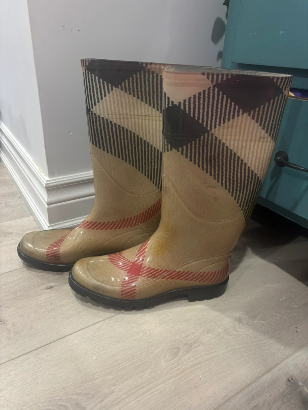 Burberry Plaid Rain Boots | Rubber Waterproof Boots | Size 8