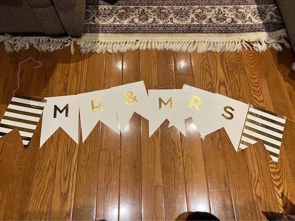 Mr and Mrs -white and gold banner $5 excellent condition