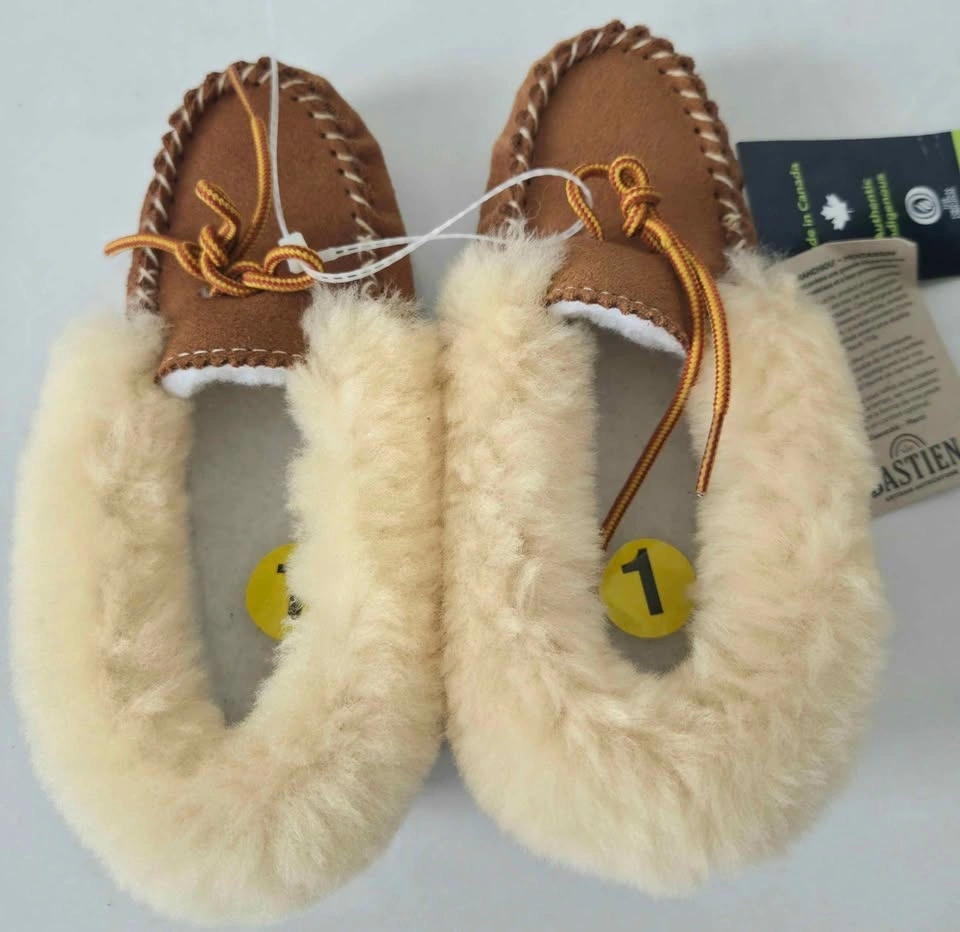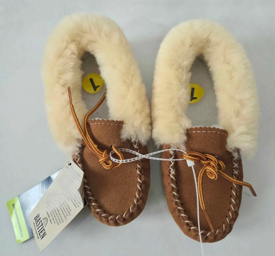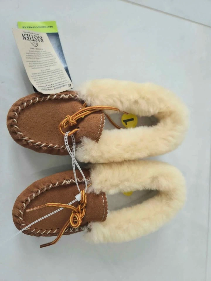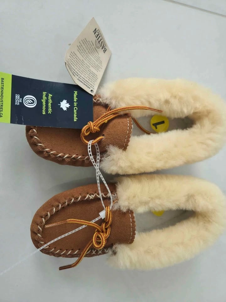 Brand new Bastien Indigenous Craftsmanship slippers. Suede and fur 100% moccasin. Flexible crepe sole, Natural color, chic and extremely cozy.