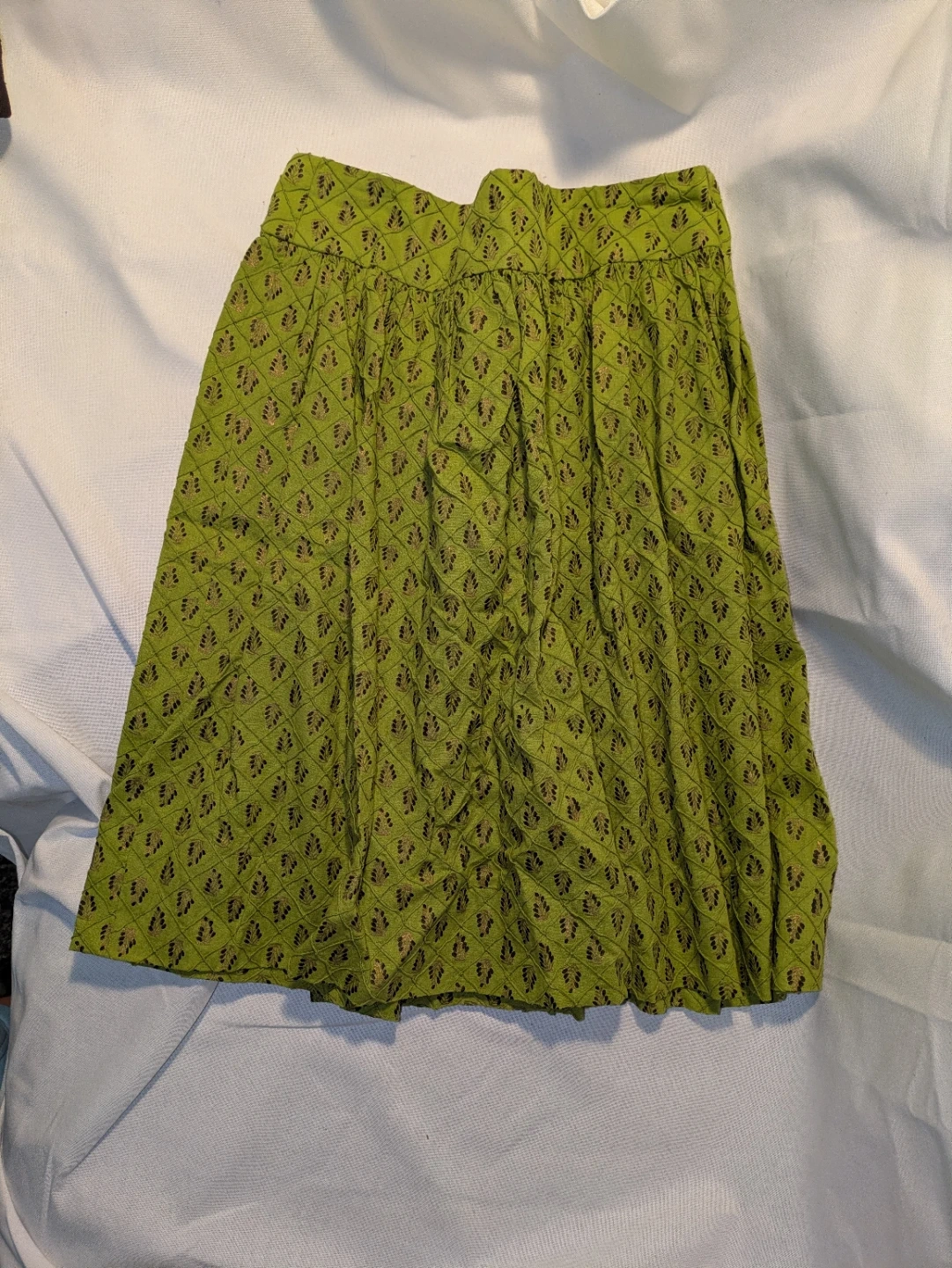 3. Gathered lime knee length - No brand, likely handmade, feels like cotton to me!