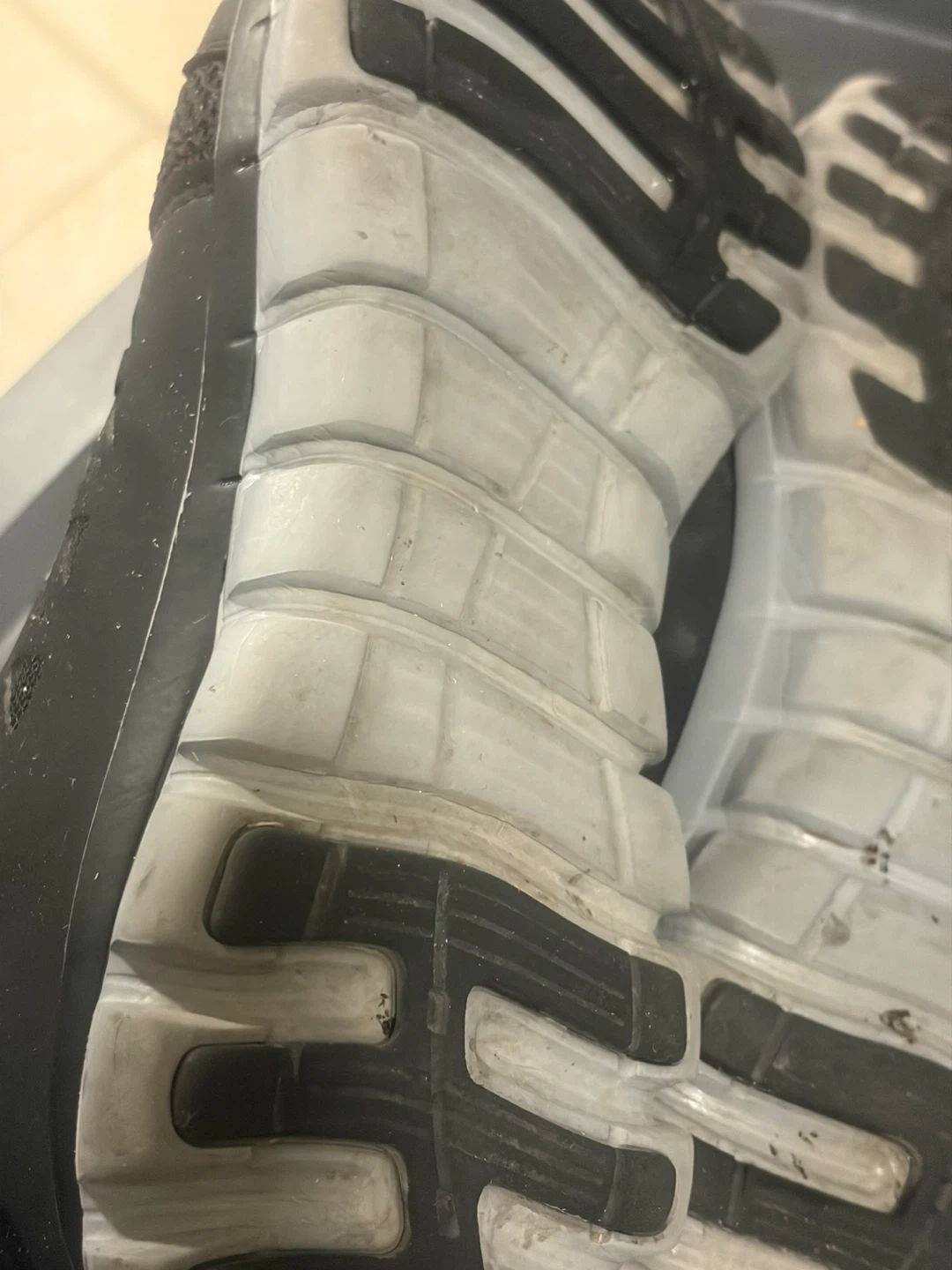 “CSA Z195-14 certified safety shoes. Steel/composite toe, puncture resistant, electric shock resistant. Lightweight athletic style. Clean condition, lots of life left.”