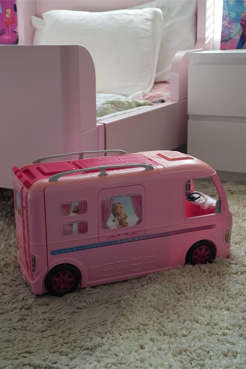 Selling a Barbie DreamCamper Vehicle in pink! It's in great condition and ready for a new adventure.