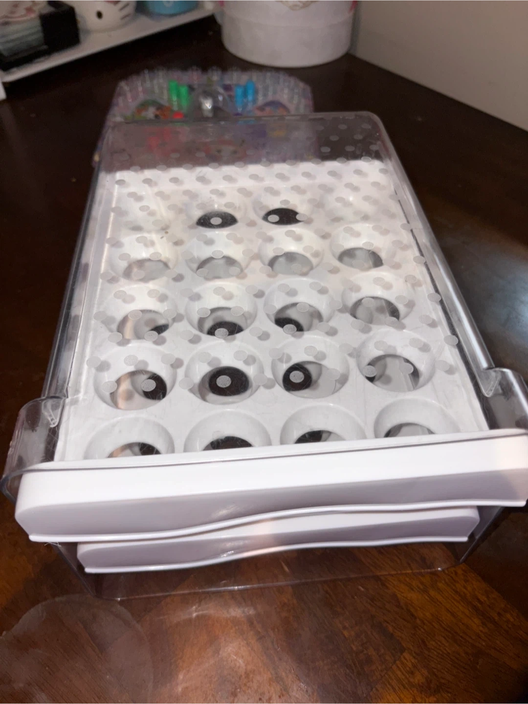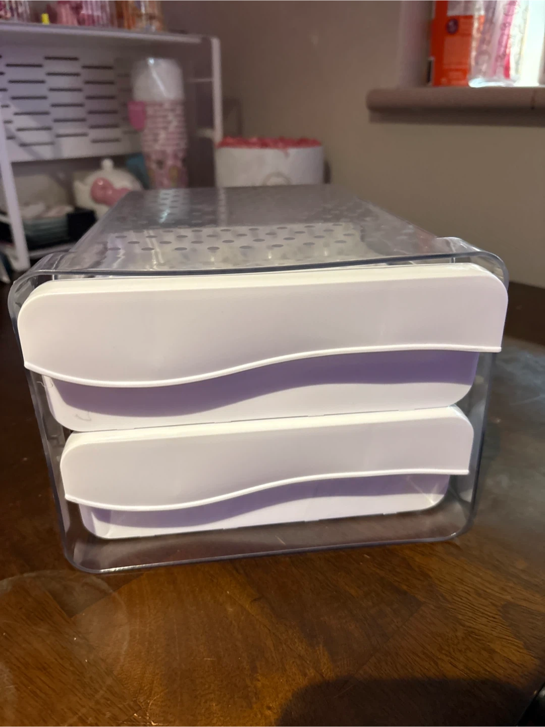 Keep your eggs fresh and organized with this stackable egg storage container! It's a clear container with two drawers and a top tray with individual slots for each egg. Perfect for keeping your fridge tidy and making sure your eggs don't get cracked, it hold up to 40 eggs