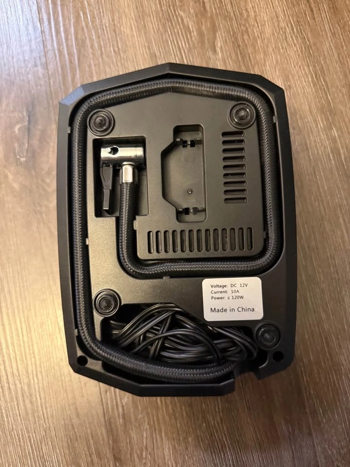 Barely used portable air compressor, perfect for topping up car tires, bikes, sports balls and more.