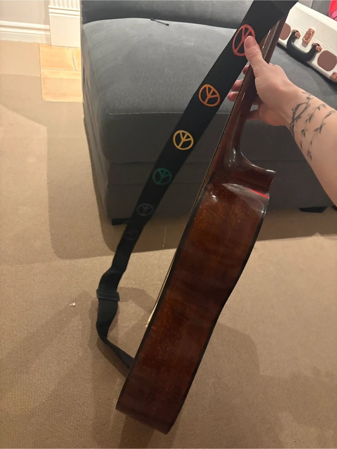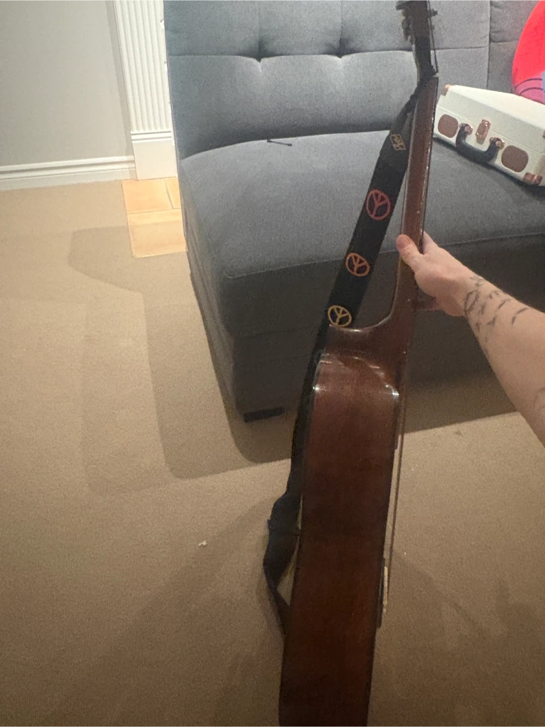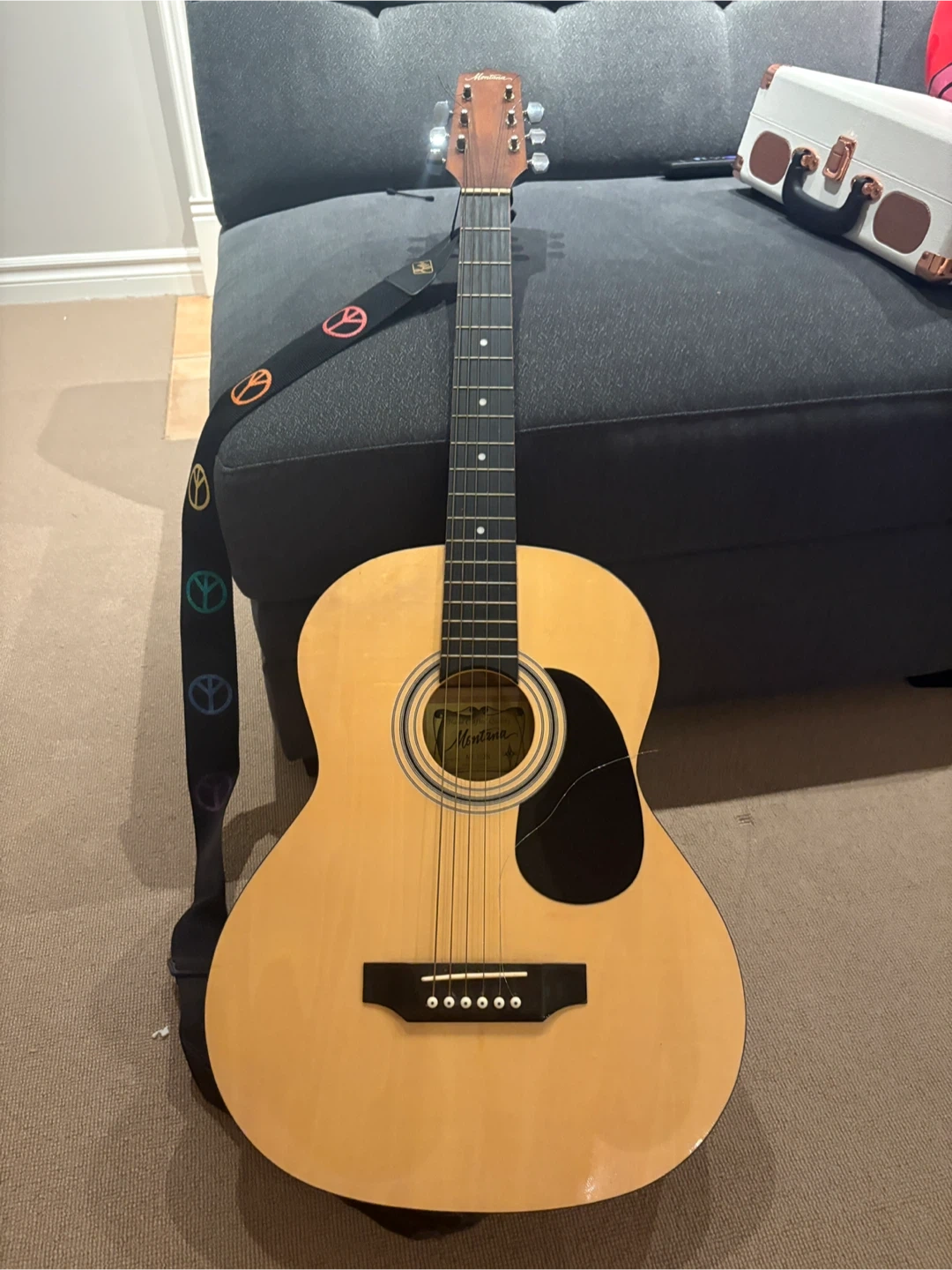Selling a Montana acoustic guitar. It has a guitar strap attached, 1 string needs replacement. Otherwise great condition.