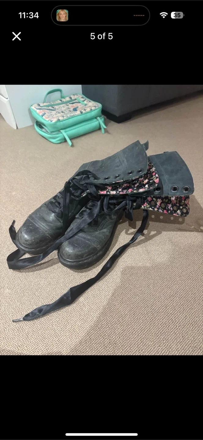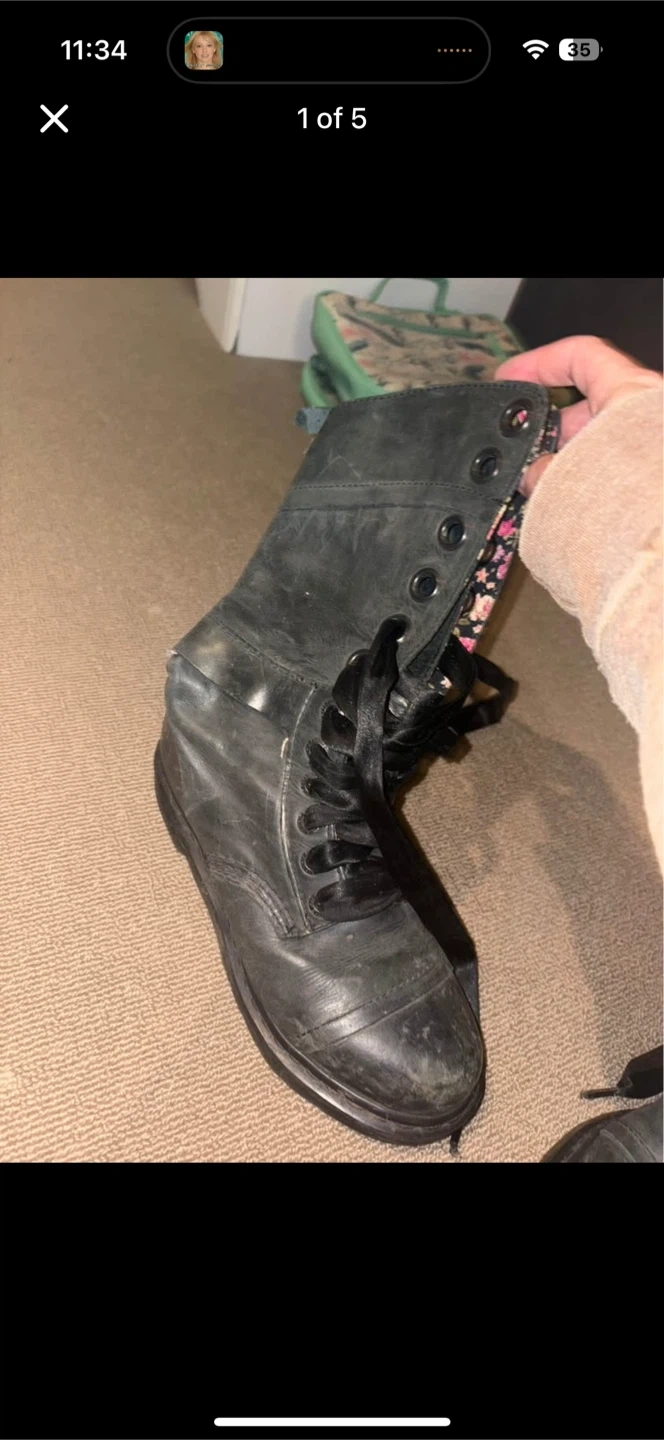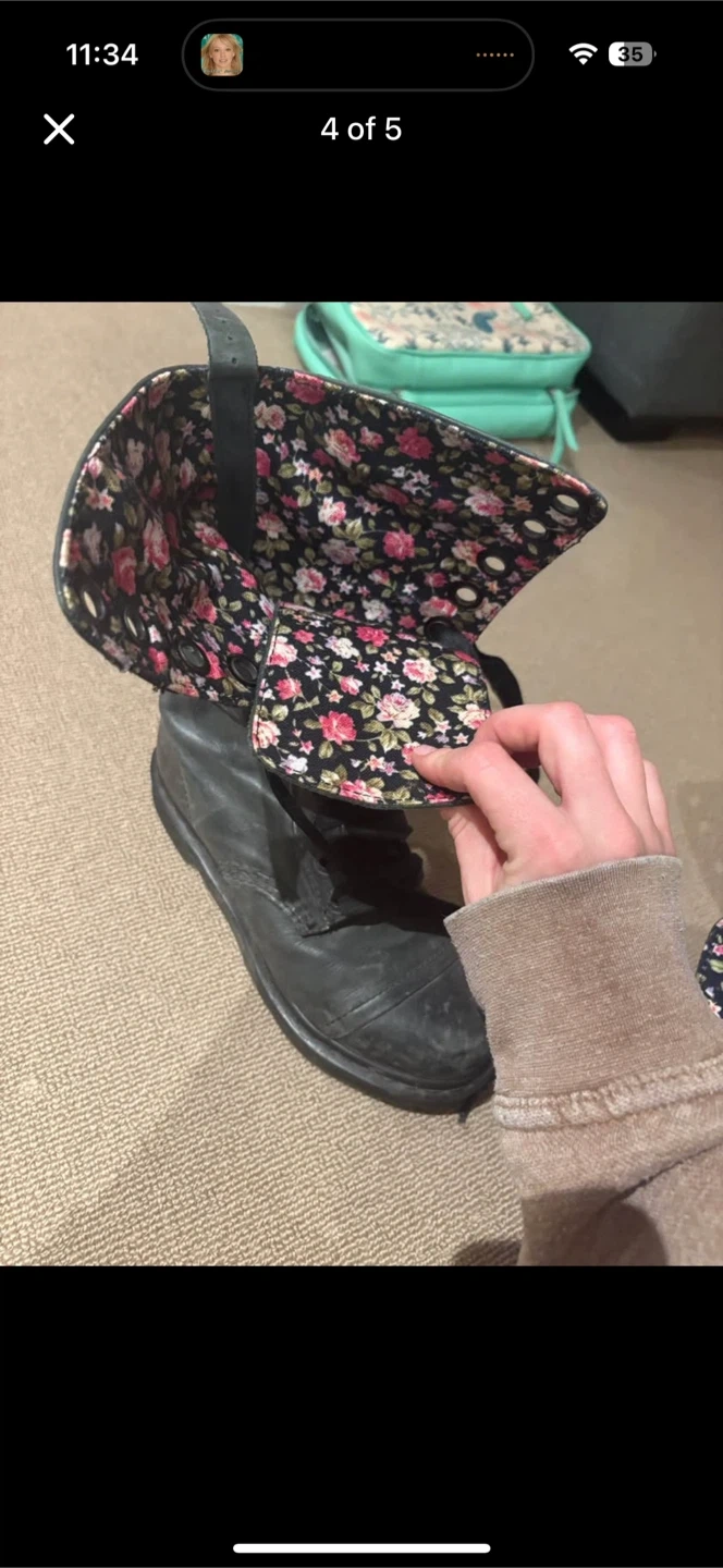 Selling a pair of Dr. Martens boots! They're black leather with a floral interior. Great for adding a bit of edge to your look
