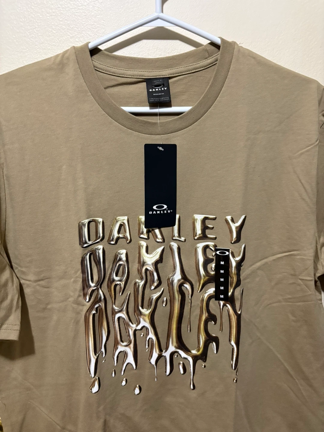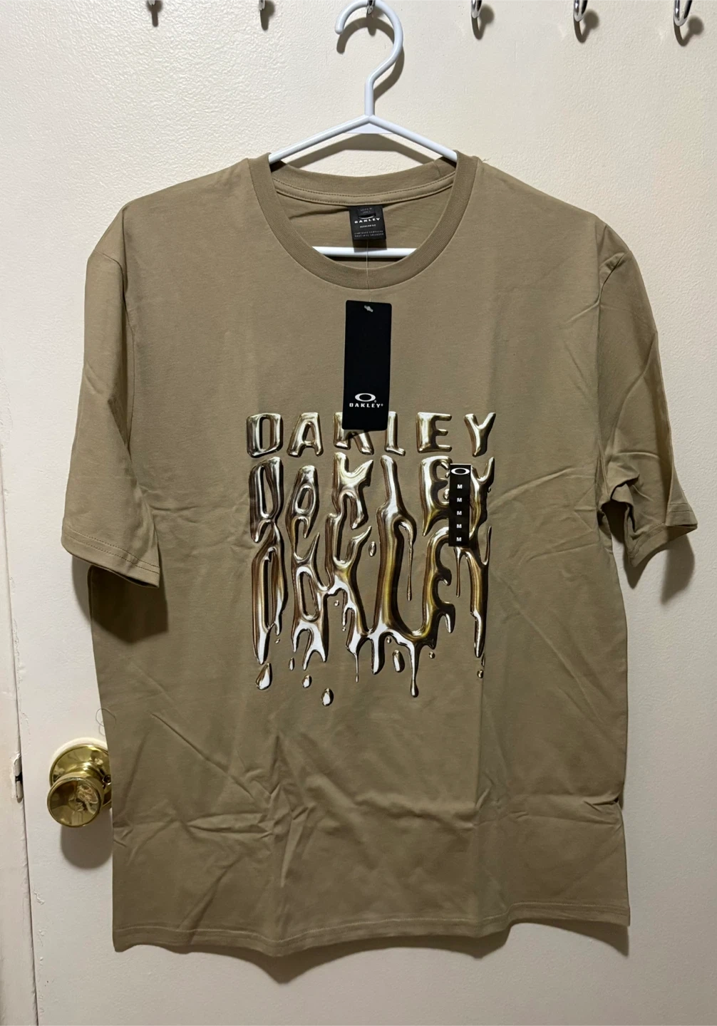 The shirt features a unique dripping Oakley logo design. It's in great condition and ready for a new owner!
