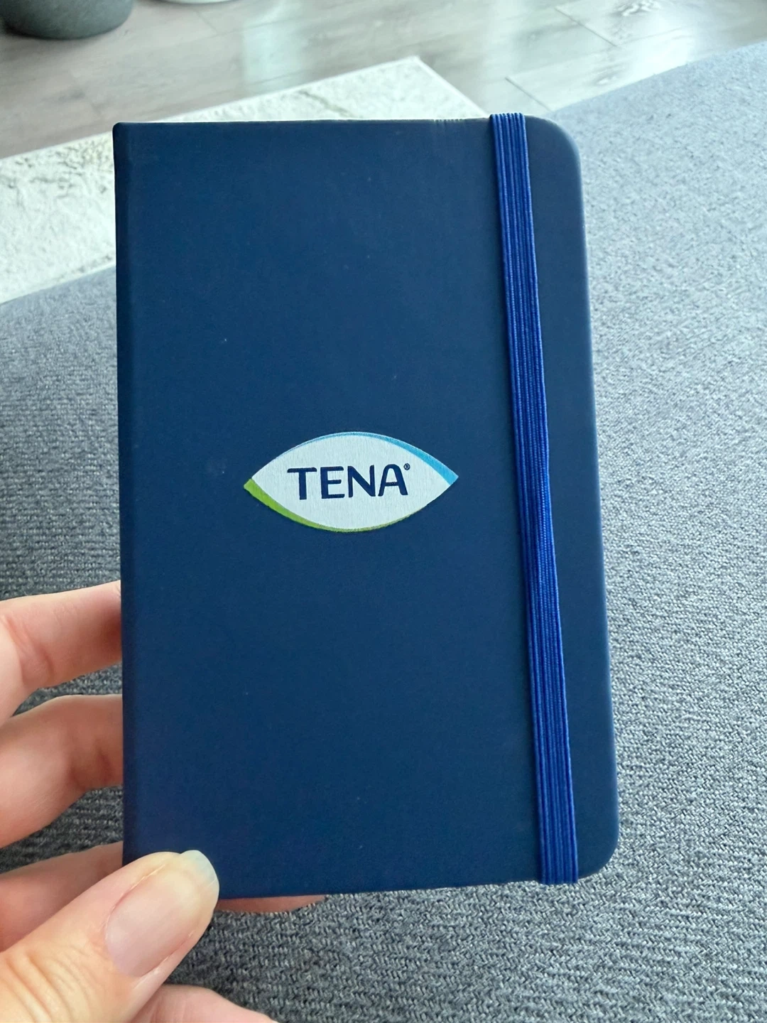 A handy blue notebook with the Tena logo on the cover. It's perfect for jotting down notes or keeping track of your to-do list