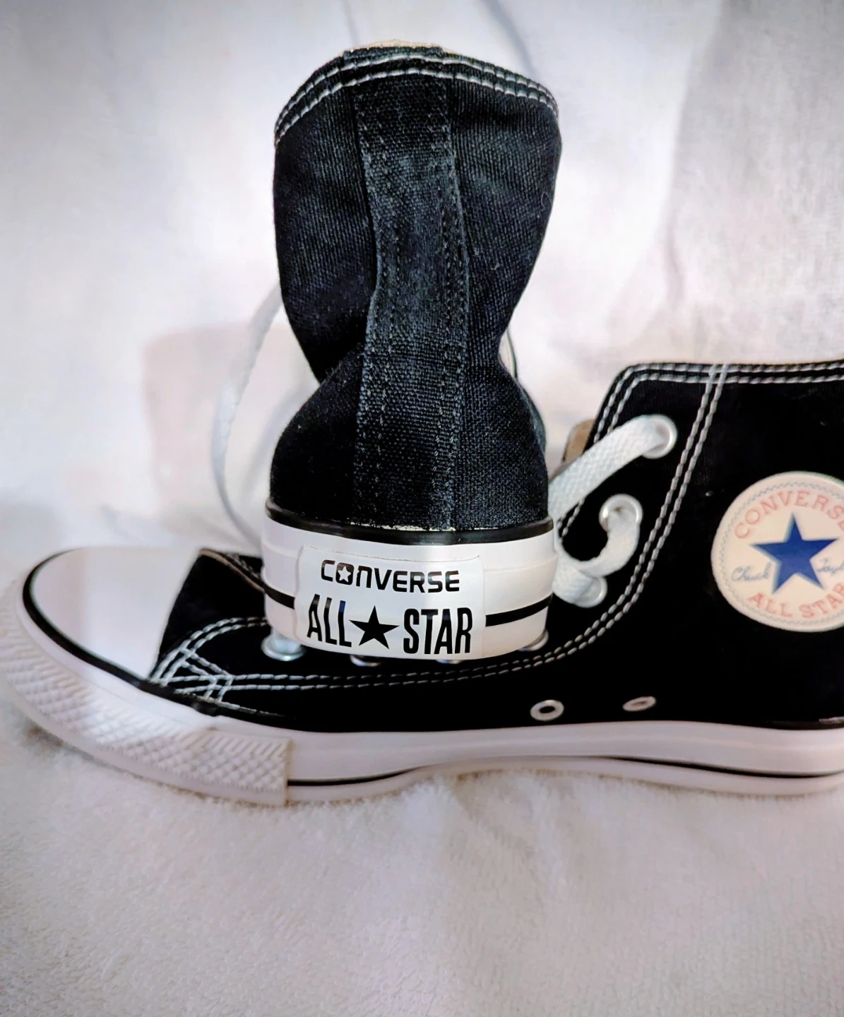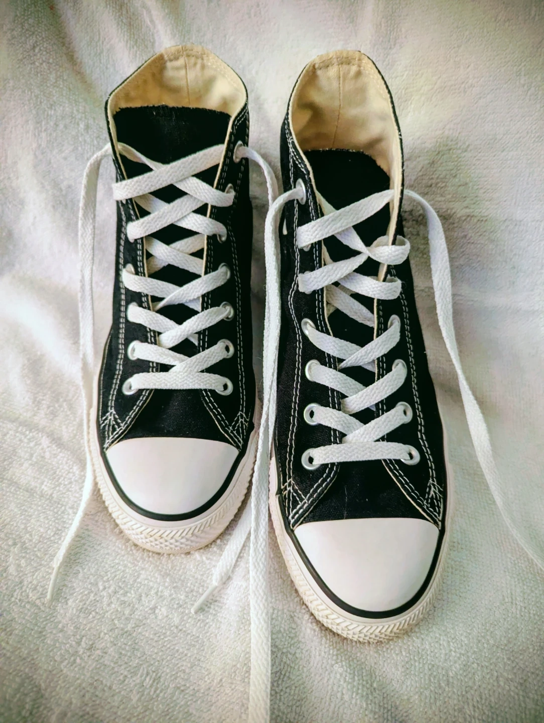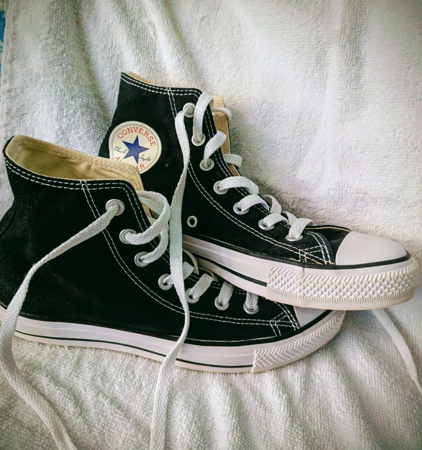 1 pair gently used classic Chuck Taylor sneakers in black and white.