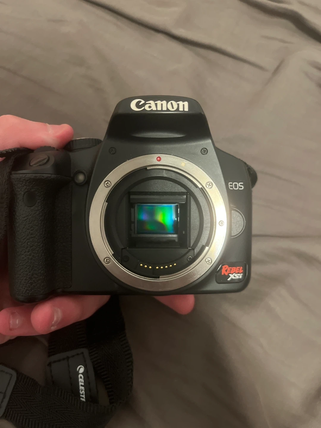 Selling a Canon EOS Rebel XSi DSLR camera. It's in good condition and ready for a new photographer to learn the basics.