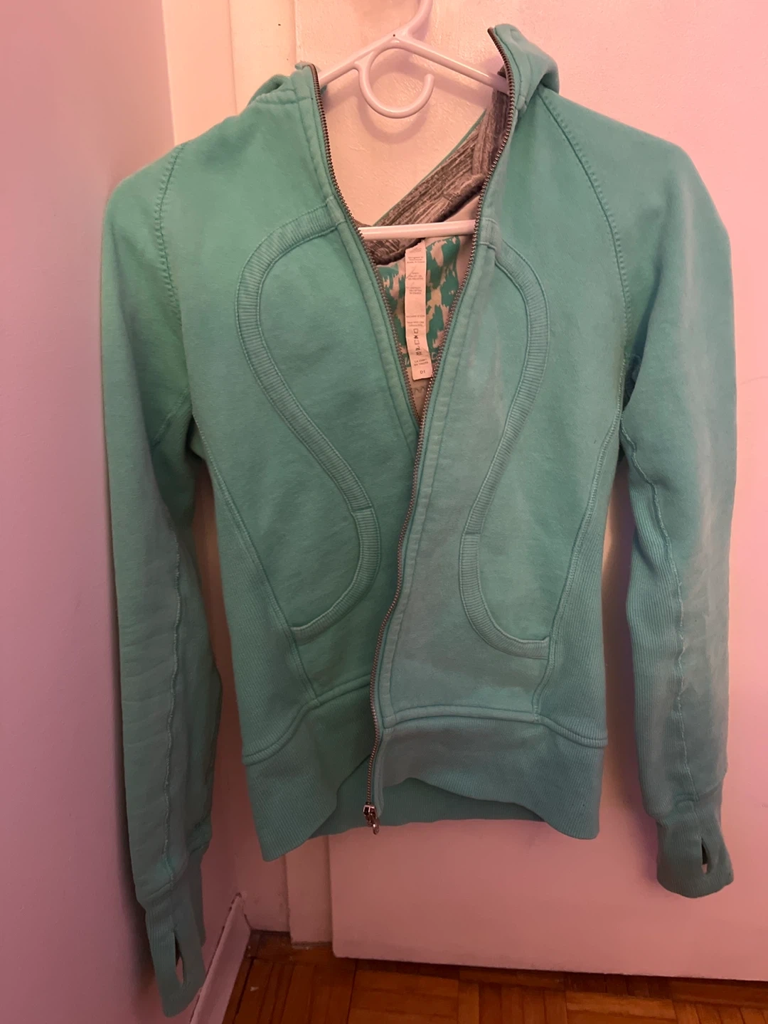 Selling a Lululemon vintage Scuba Hoodie . It's in decent condition and ready for a new owner! The hoodie is a lovely turquoise colour and features the classic Lululemon logo. Perfect for workouts or casual wear!
