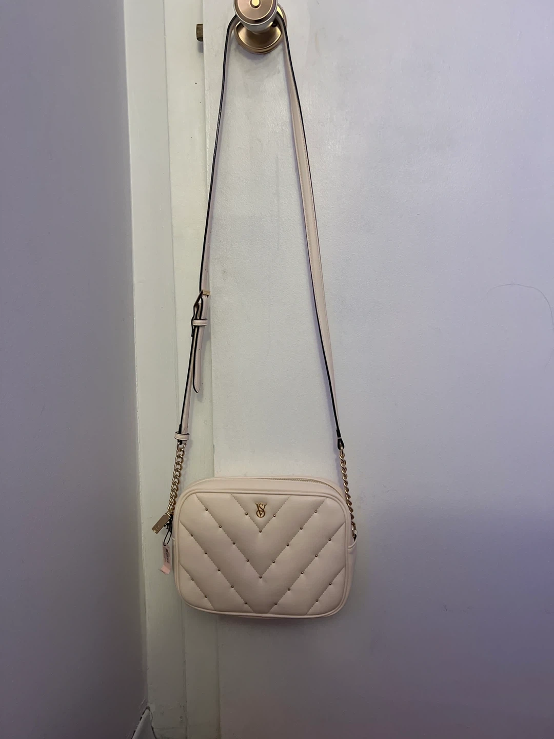 Selling a cute crossbody bag from Victoria's Secret! It's a cream colour with gold chain detailing. Perfect for a night out or just running errands around town. It is also brand new and from America!