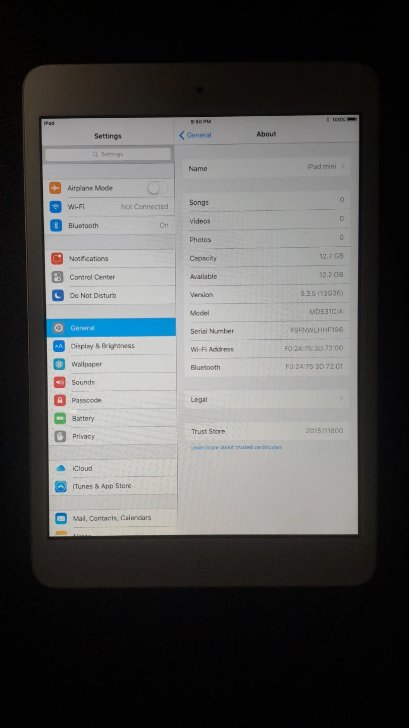 Ipad Mini White like new 99% battery.Brand new charging cable