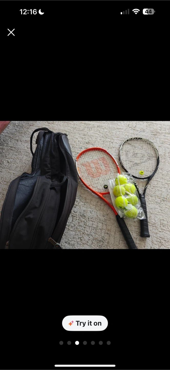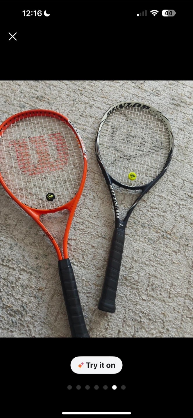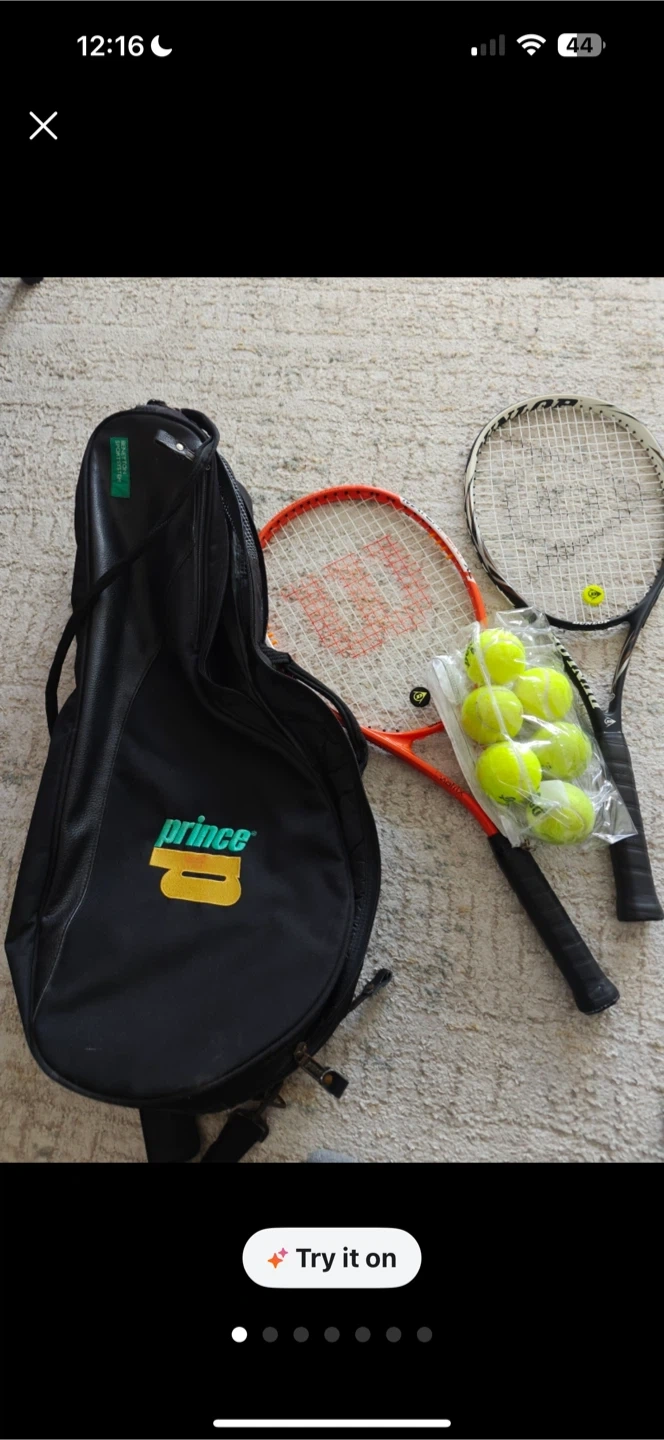 Selling a pair of used tennis racquets. One is a Wilson and the other is a Dunlop. Also included is a Prince tennis bag and a package of tennis balls. Great for beginners!